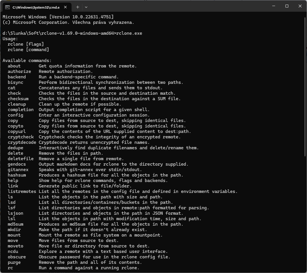 rclone je nástroj ovládaný pomocí příkazového řádku, který slouží pro správu dat dat a synchronizaci souborů mezi počítačem a vzdálenými cloudovými úložišti.