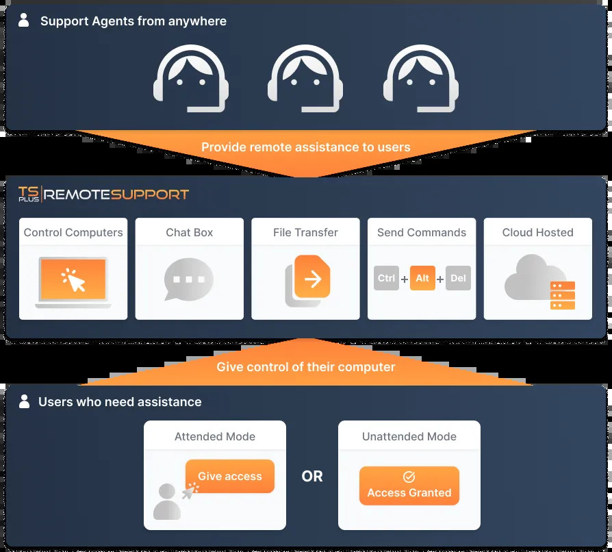 RDS Remote Support je aplikace pro připojení ke vzdáleným počítačům a pro jejich kompletní vzdálenou správu.