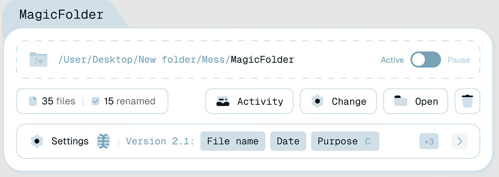 Renamer.ai je desktopový nástroj sloužící pro dávkové přejmenování a také pro organizaci velkého množství souborů. Přejmenování souborů probíhá podle inteligentních vzorů a jejich organizace je možná do složek "Magic Folders", které automaticky třídí soubory podle nastavených pravidel. Podporovány jsou všechny nejběžnější formáty souborů a textových dokumentů.