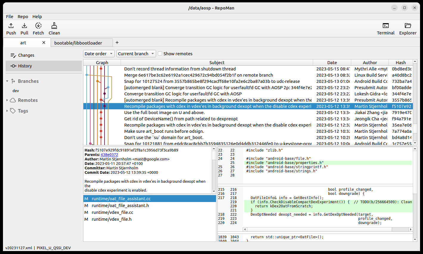 RepoMan je grafické rozhraní nástroje Repo od Google, která slouží pro přehlednou správu Git repozitářů a automatizaci workflow.