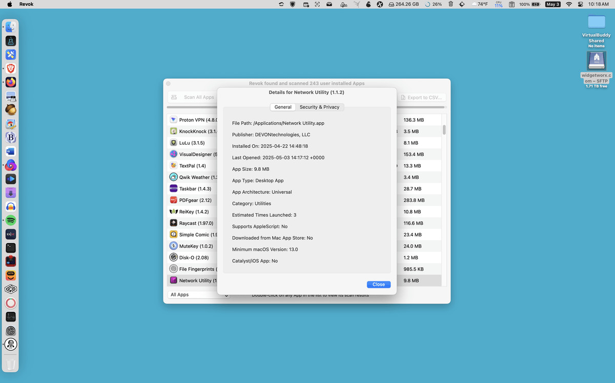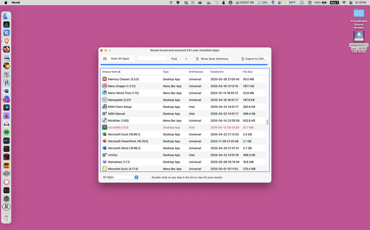Revok for Mac je aplikace sloužící pro přehlednou správu všech instalovaných aplikací v počítačích s macOS. Uživatel má také k dispozici velké množství dodatečných informací o každé instalované aplikaci. Díky programu může uživatel také například rozpoznat nepoužívané nebo zastaralé aplikace a zkontrolovat potenciální bezpečnostní rizika.