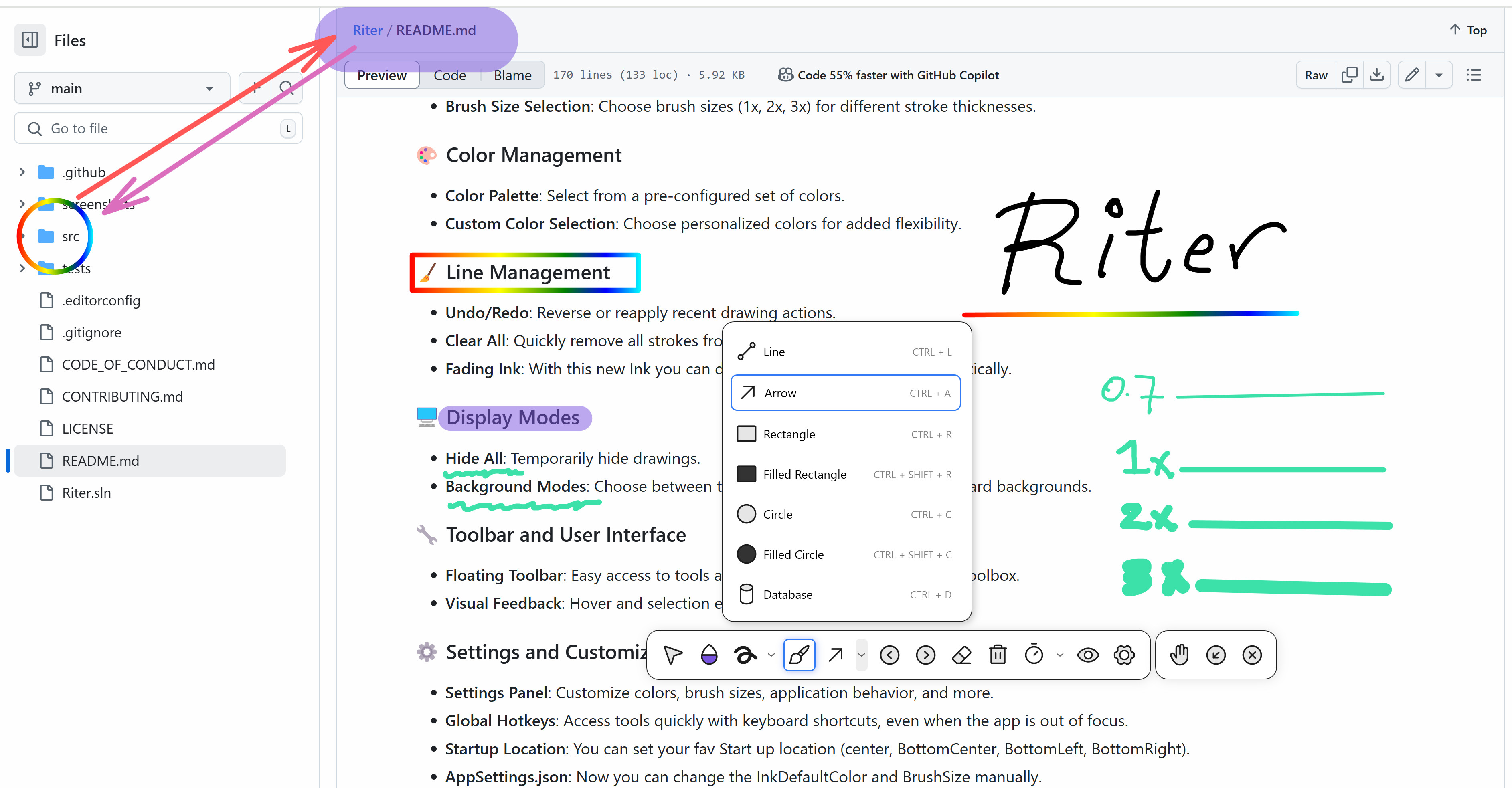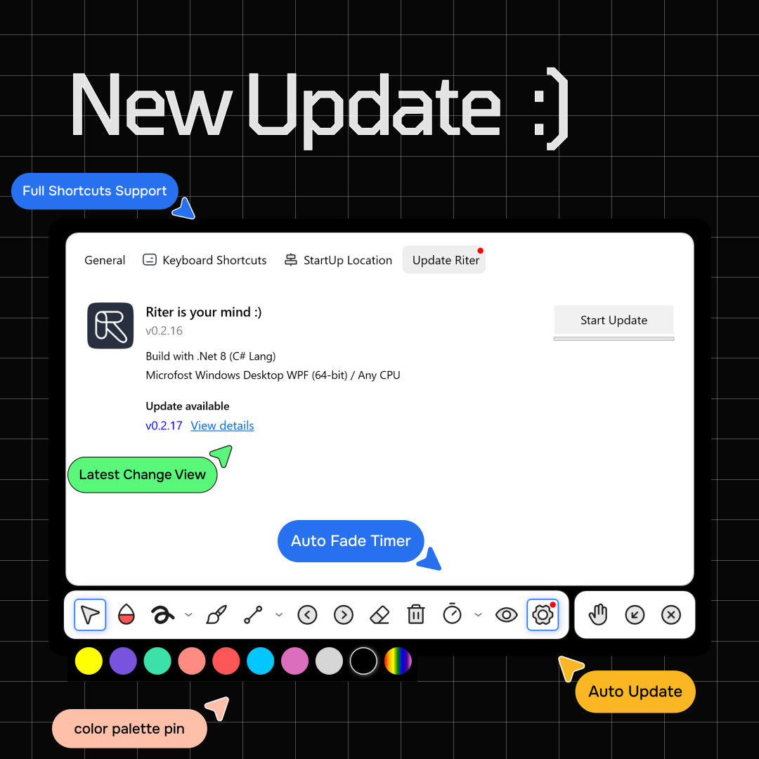 Riter je nástroj, jehož pomocí lze snadno kreslit přímo na obrazovce při různých prezentacích apod. Program nabízí velké množství kreslících nástrojů a funkcí pro efektivní a flexibilní kreslení, kreslení s inkoustem, správu barev a linií.