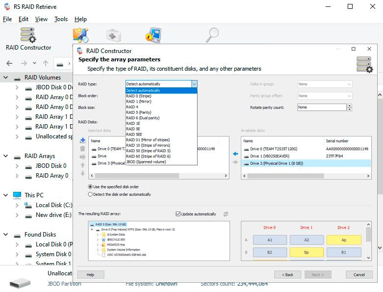 RS RAID Retrieve je aplikace sloužící pro obnovení dat z poškozených diskových polí RAID nebo NAS úložiště. Program umožňuje připojit jednotlivé disky přímo k počítači a následně provést obnovení dat. Podporována jsou disková pole typu RAID 0 - RAID 6 i další typy diskových polí. V některých případech lze obnovit dokonce i data v případě selhání či poškození většího počtu disků, než je standardně tolerováno pro bezpečné zachování dat.