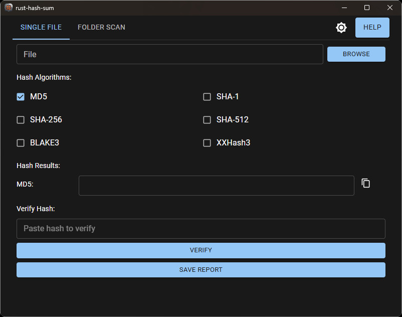 Rust Hash Sum je nástroj sloužící pro výpočet a ověřování kontrolních součtů souborů, přičemž jsou podporovány algoritmy MD5, SHA-1, SHA-256, SHA-512, BLAKE3 a xxHash3. Díky paměťovému mapování a multithreading program zvládá rychle pracovat i s velkými soubory. Možné je hashování jednotlivých souborů i kompletních složek, ověření integrity podle známého hashe nebo export výsledků do souborů typu JSON, CSV či TXT.