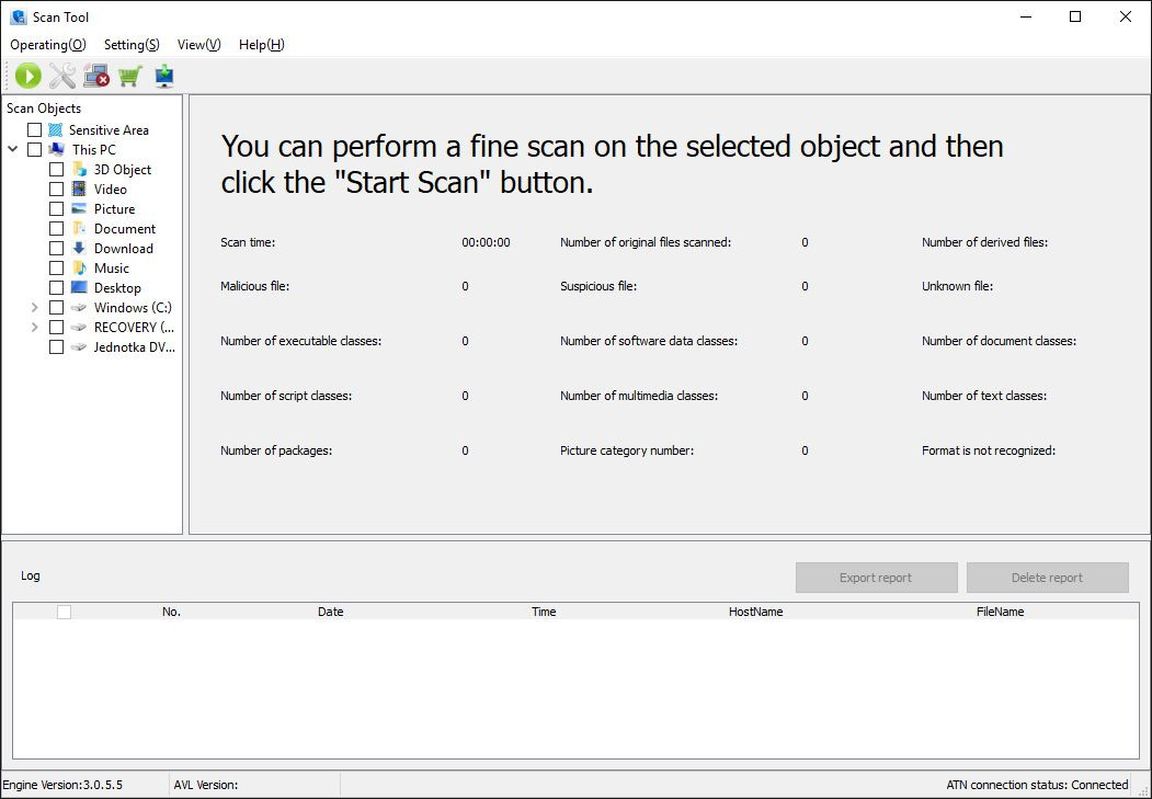 ScanTool je antivirový nástroj, který dokáže důkladně prohledat vybranou oblast disku nebo systému a detekovat i odstranit všechny viry a jiné škodlivé programy nebo kódy. Program využívá lokální i cloudový antivirový engine, dokáže extrahovat metadata a verifikovat hostitelské soubory i jiné objekty. Všechny zjištěné a důležité údaje jsou ukládány do LOG souboru. Program není potřeba instalovat.