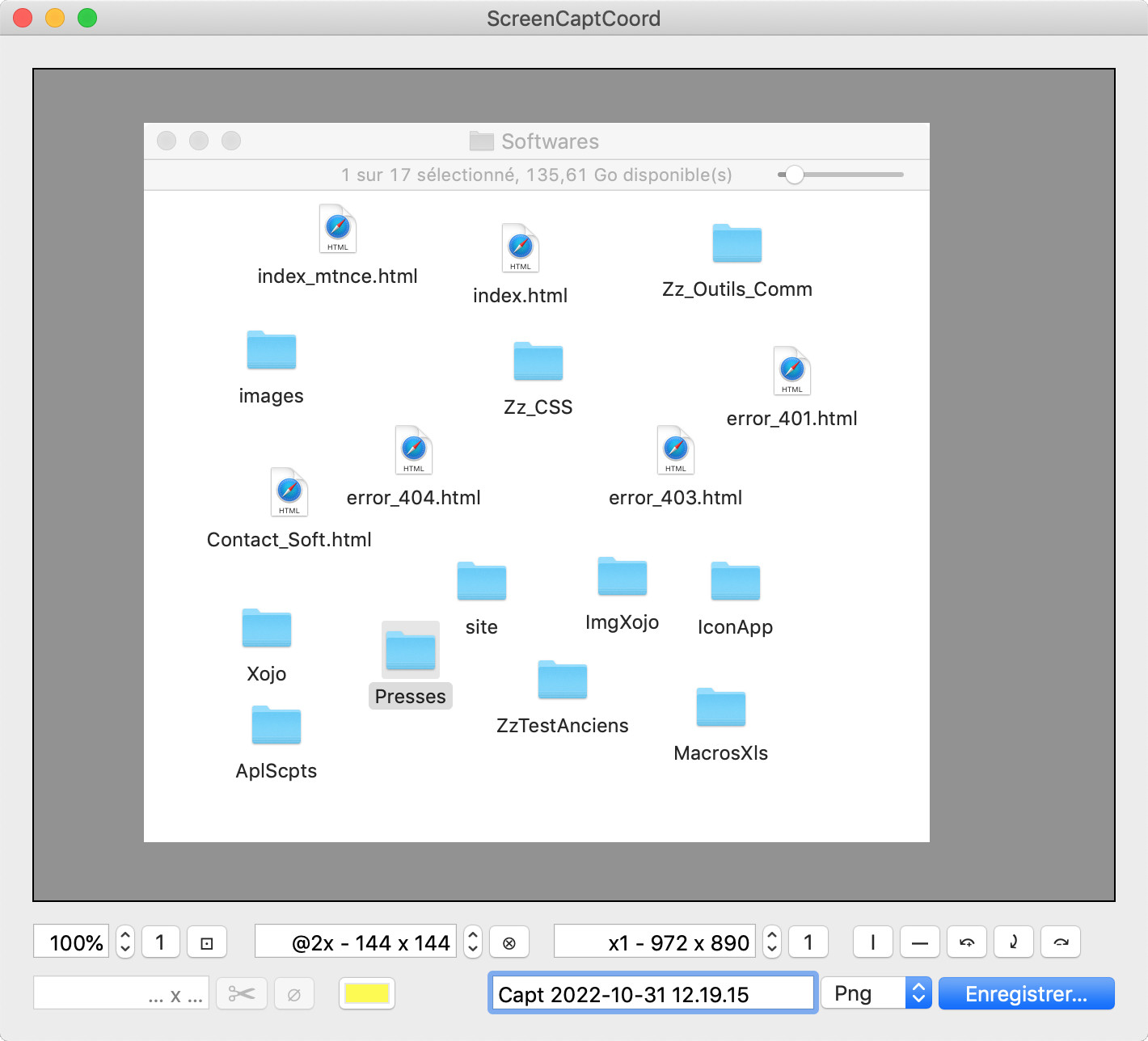 ScreenCaptCoord for Mac je aplikace sloužící pro zobrazení aktuálních souřadnic kurzoru myši a pro pohodlnou tvorbu snímků obrazovky v počítačích s macOS. V programu lze nakreslit obdélník nebo ovál pro měření vzdáleností na obrazovce (v pixelech) nebo rychle pořídit snímek obrazovky, který lze následně upravit pomocí několika základních nástrojů pro editaci obrázků.