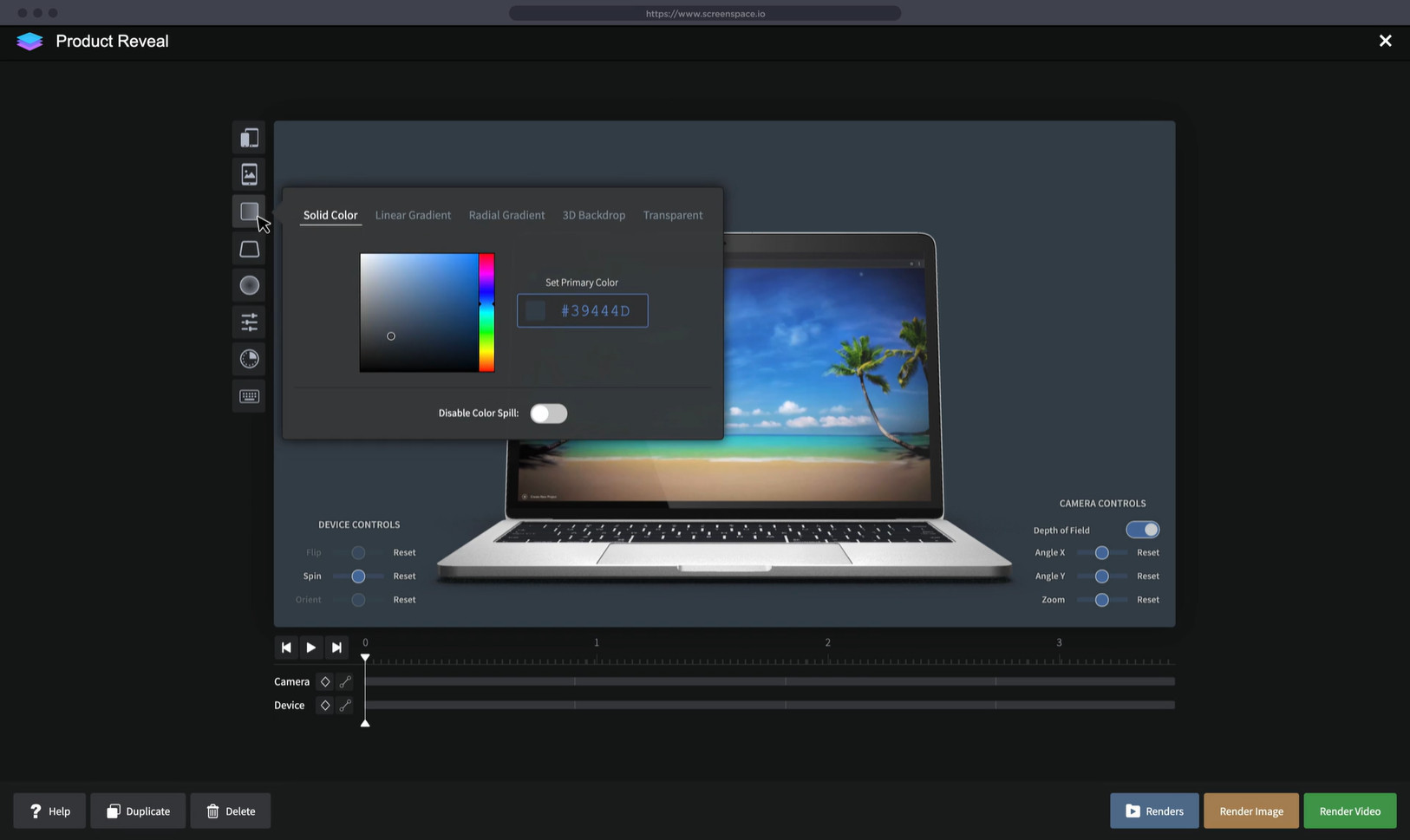 ScreenSpace je aplikace určená pro tvorbu pěkných produktových videí nebo prezentací. Program je možné využít například pro prezentaci vašich webových stránek, desktopové či mobilní aplikace pomocí apod. Uživatel má k dispozici velké množství již připravených šablon pro snadnější tvorbu prezentace. Vzhled modelu fiktivního zařízení (notebook, mobilní telefon, tablet,...) lze pak snadno přizpůsobit pomocí palety barev. Vlastní barvu je možné aplikovat také na pozadí videa.