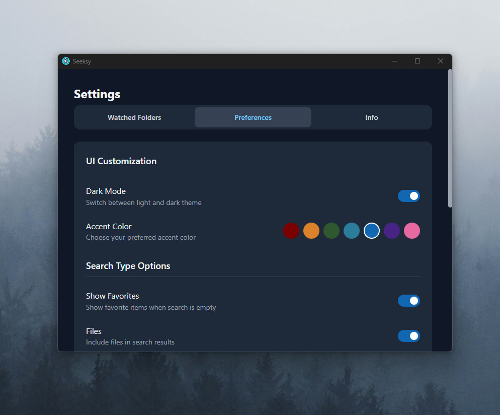 Seeksy je jednoduchý nástroj sloužící pro snadné a rychlé vyhledávání souborů, aplikací, složek, emotion ikonek apod. Vyhledávací lišta programu se aktivuje pomocí klávesové zkratky. Vybrané složky jsou program indexována na pozadí systému s možností pauzy a optimalizace výkonu. Výsledky vyhledání jsou pak zobrazovány kontinuálně v průběhu hledání.