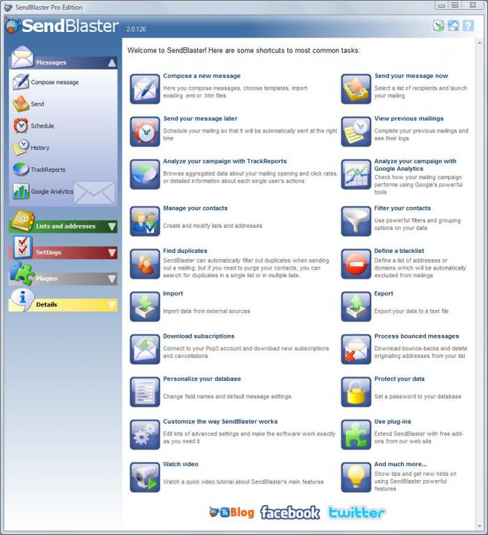 SendBlaster je aplikace pro hromadné rozesílání e-mailů na zvolené adresy nebo vybrané skupině uživatelů. Automaticky a hromadně lze rozesílat lze například různé novinky, informační e-maily, reklamní letáky apod.