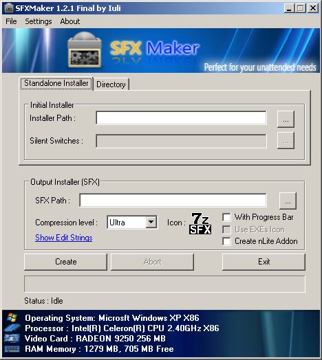 SFXMaker je užitečný nástroj pro snadnou tvorbu jednoduchých samorozbalovacích instalátorů přímo ze ZIP archivů. Program má velice snadné ovládání a nevyžaduje instalaci.