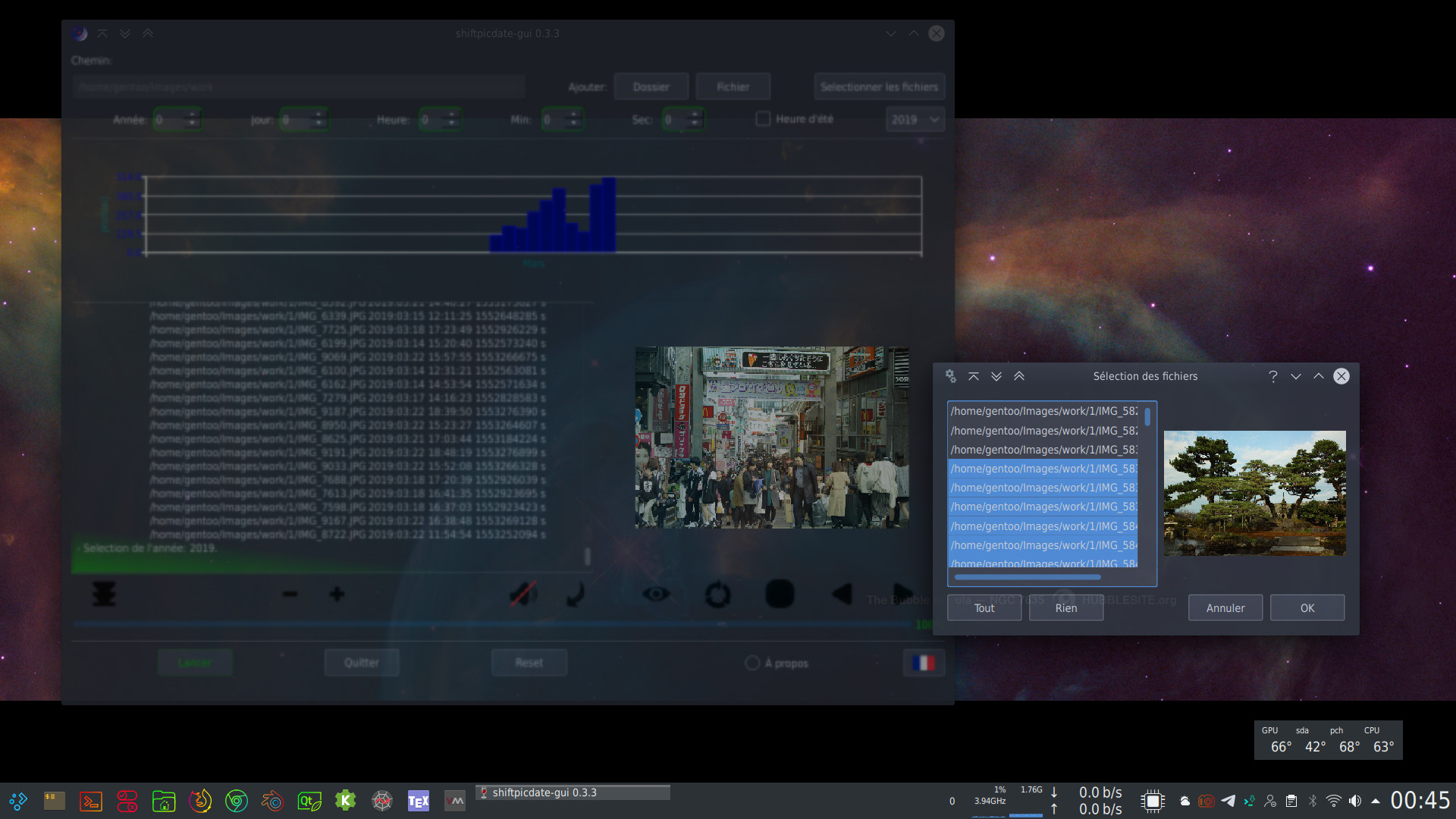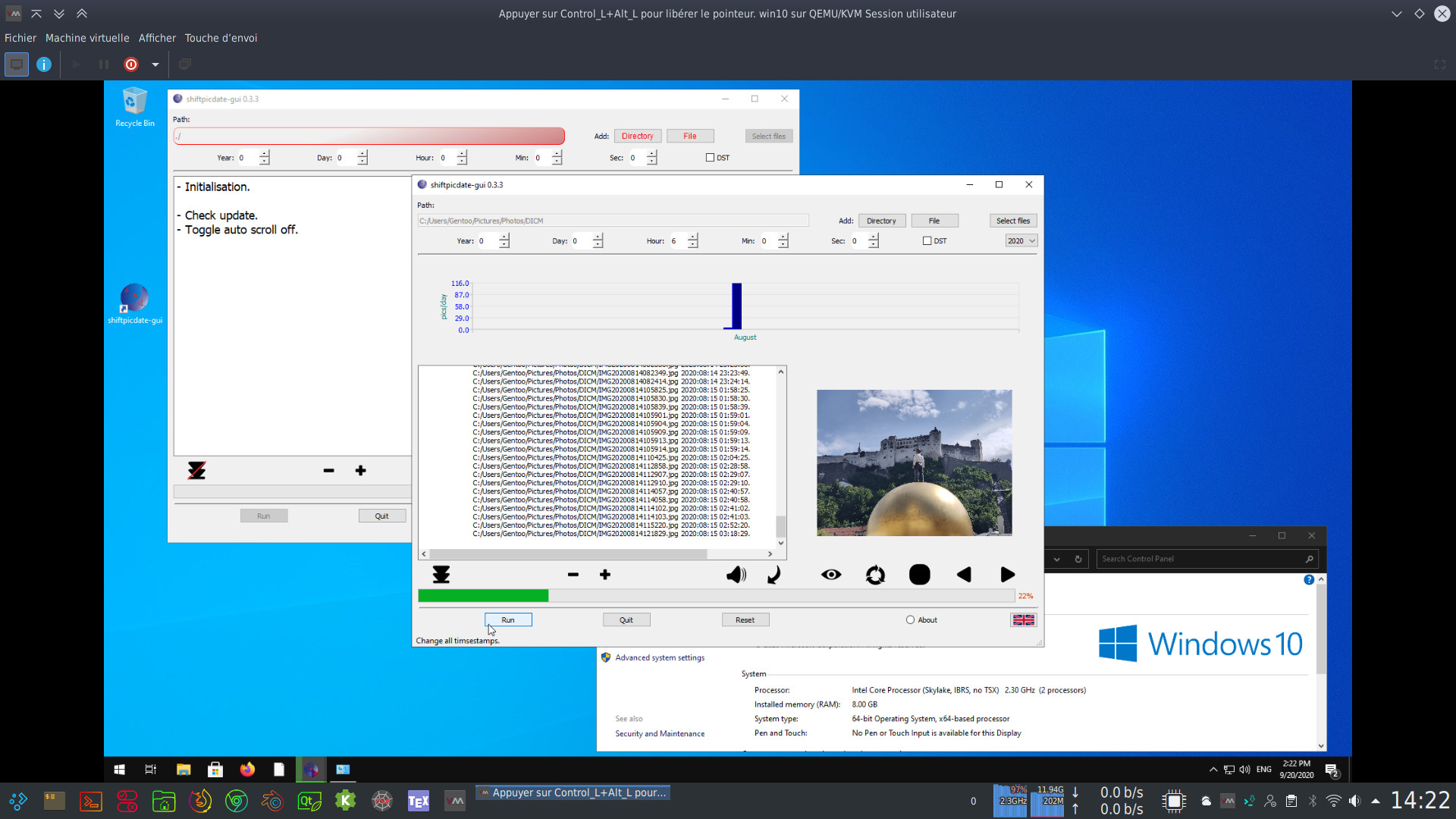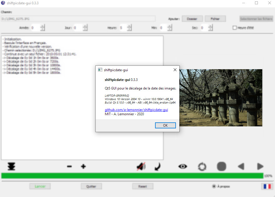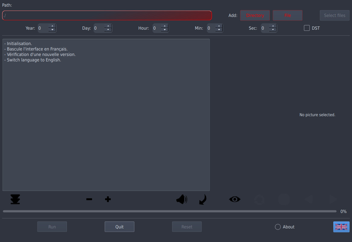 shiftpicdate-gui je aplikace, jejíž pomocí lze hromadně upravit datum v EXIF metadatech uložených i digitálních fotografií. Program podporuje hromadné zpracování digitálních snímků a datum lze například změnit u všech fotografií ve zvolené složce a to i včetně podsložek. Program má přehledné a intuitivní ovládání.