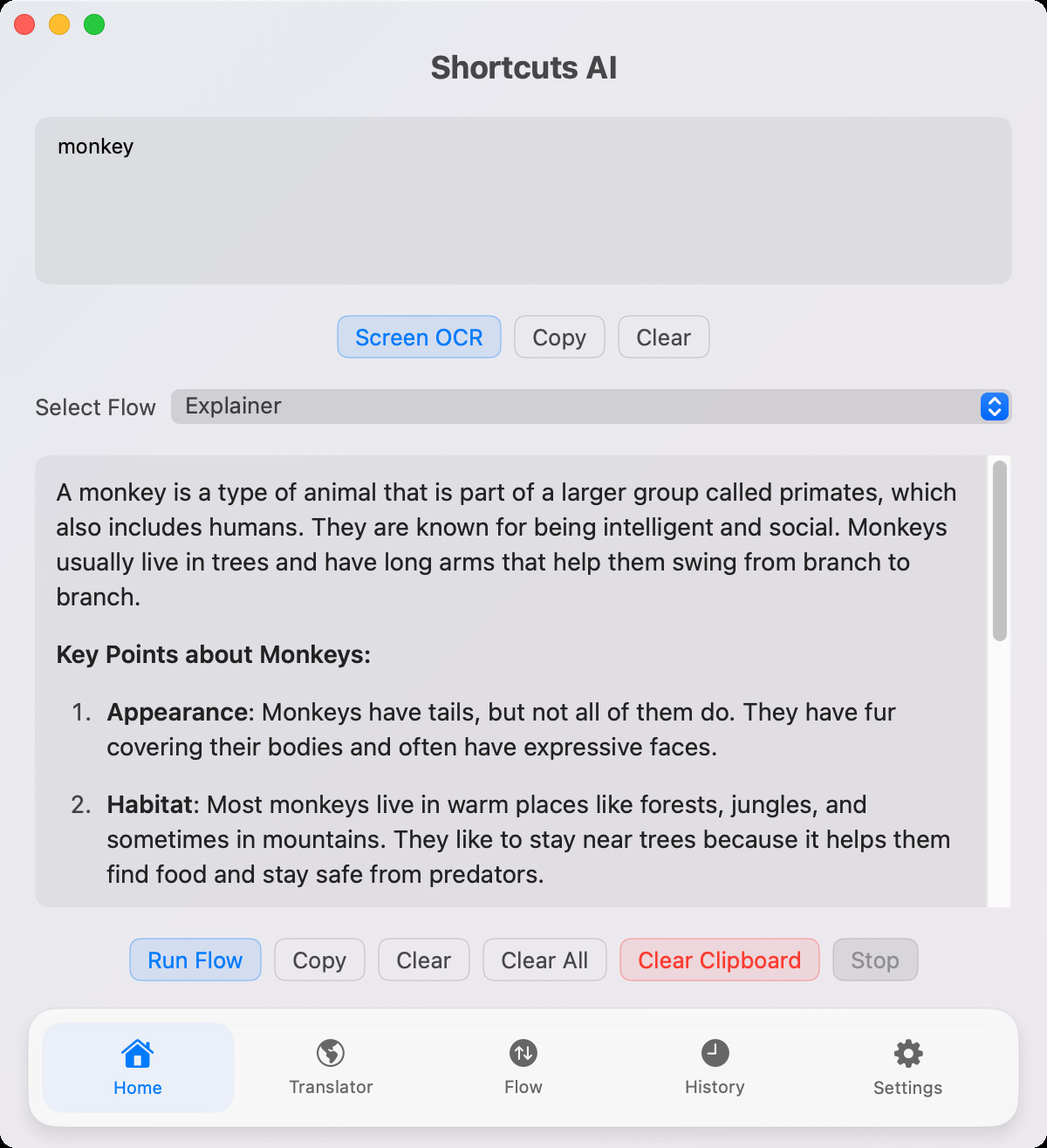 Shortcuts AI for Mac je aplikace sloužící pro tvorbu a správu automatizovaných pracovních postupů (workflow) za pomocí umělé inteligence (AI). Program umožňuje automatizaci různých úkolů a často používaných postupů. Využívá AI pro optimalizaci a zefektivnění procesů a nechybí možnost přizpůsobení pracovních postupů.