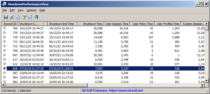 ShutdownPerformanceView je jednoduchý nástroj pro analýzu a zobrazení detailních informací o výkonu při vypínání operačního systému. Data jsou čerpána přímo z protokolu Microsoft-Windows-Diagnostics-Performance/Operational. Nástroj tak může uživateli pomoci s řešením problémů spojených s pomalým vypínáním počítače.