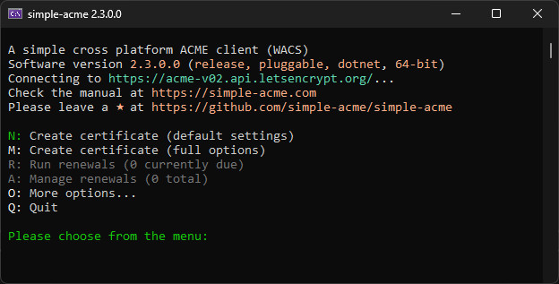simple-acme umožňuje vytváření plánovaných úloh a cronjobs pro automatické obnovování certifikátů. Nechybí rovněž také funkce pro ukládání certifikátů do Windows Store, IIS CCS, PEM souborů, PFX/PKCS12 souborů nebo Azure KeyVault.