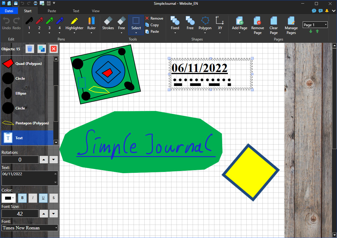 SimpleJournal je nástroj, který slouží pro snadnou a rychlou tvorbu poznámek psaných i kreslených a připomíná známější aplikace OneNote nebo Windows Journal. Uživatel má k dispozici celou řadu kreslících nástrojů jako jsou pero, zvýrazňovač, guma, pravítko apod. Kreslit lze rovněž různé geometrické tvary. S jednotlivými objekty lze na ploše snadno manipulovat ve smyslu rotace či škálování velikosti.