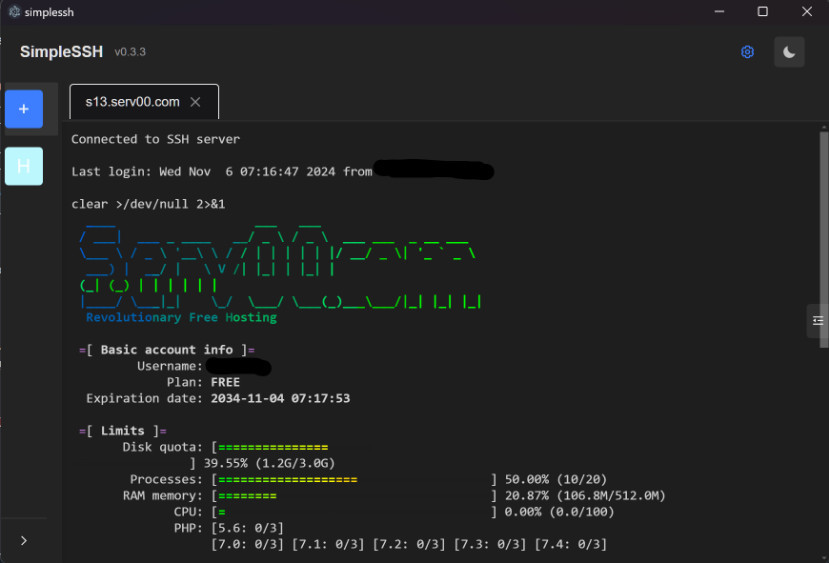 SimpleSSH je nenáročný SSH terminál založený na Electronu a Pythonu, který podporuje vytvoření a správu více SSH připojení současně. Podporován je také přenos souborů pomocí SFTP protokolu a nechybí bezpečné ověření přístupovým heslem a klíčem. Ukládat a načítat lze také konfiguraci SSH terminálu.