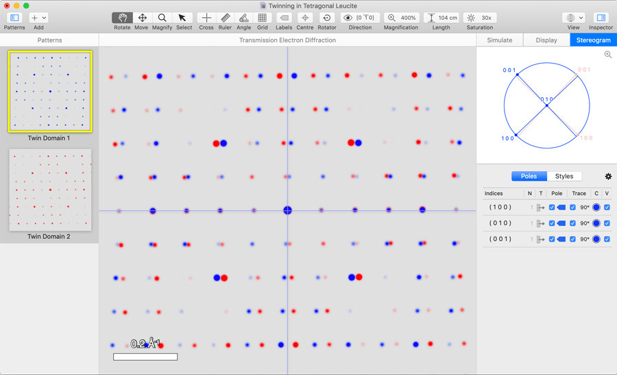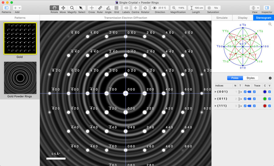 SingleCrystal je aplikace, která je určena pro přehlednou vizualizaci a lepší porozumění difrakčních vlastností krystalů. Program umožňuje simulovat elektronové difrakční obrazce a reciproké sekce mřížky, které lze přímo porovnávat s pozorovanými daty. Program dokáže také zobrazit stereografické projekce rovin, stop, zón a os zón.