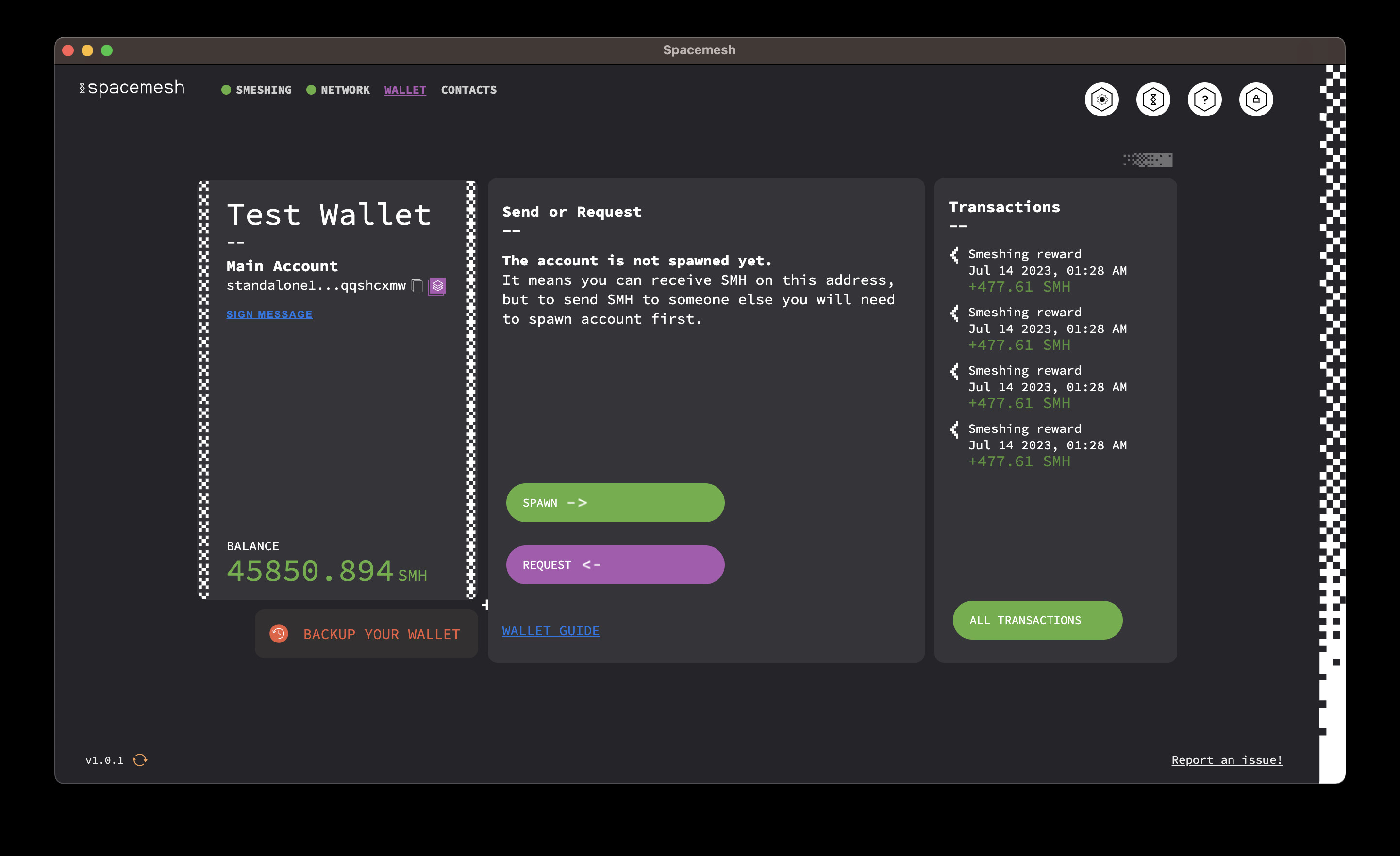 Smapp je přehledný desktopový klient, který v sobě kombinuje funkce Smesher a peněženky pro kryptoměnu Spacemesh.