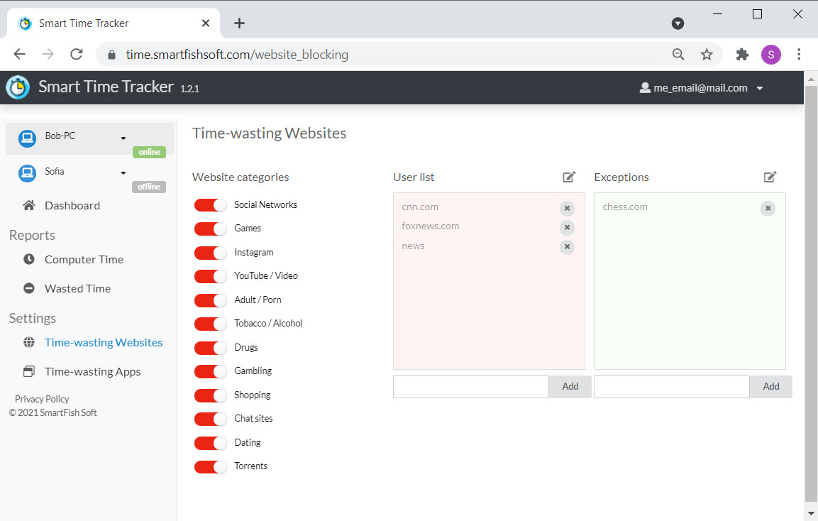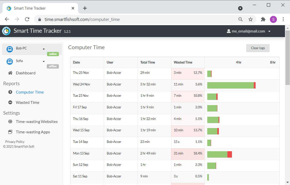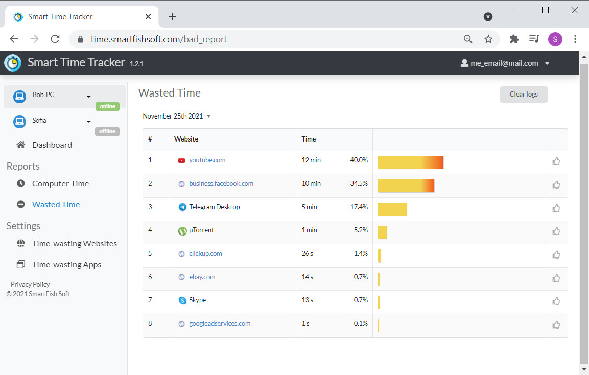 Smart Time Tracker je aplikace určená pro sledování, vyhodnocení a přehledné grafické zobrazení využití pracovního i volného času. Uživatel pak díky tomuto přehledu může snadno identifikovat "zbytečné" činnosti, které zabírají příliš mnoho času. Program pomáhá také rozpoznat důvody rozptýlení a zobrazit varování pokaždé, když ztratíte koncentraci.