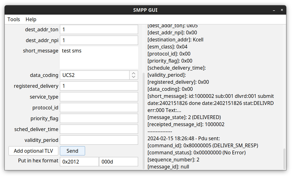 SMPP protokol umožňuje odesílat a spravovat SMS zprávy přes SMPP servery bez potřeby externích závislostí. Nástroj je určen primárně pro vývojáře a administrátory SMS brán, kteří potřebují testovat nebo odesílat zprávy přes SMPP.