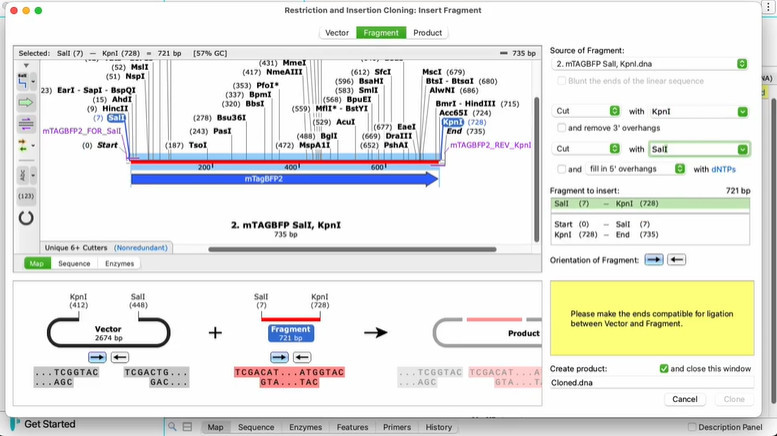 SnapGene je profesionální aplikace, jejíž pomocí lze optimalizovat a zlepšit postupy molekulární biologie a také plánovat a simulovat manipulaci s DNA. Program umožňuje například navrhovat a simulovat klonovací postupy, testovat složité projekty a zachycovat chyby. Je rovněž schopen vizualizovat procesy a automaticky zaznamenat práci.