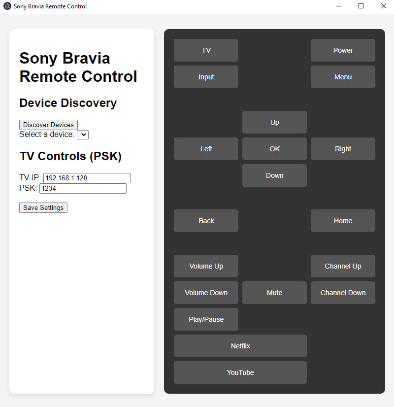 Sony Bravia Remote Control je aplikace sloužící pro vzdálené ovládání televizorů Sony Bravia v lokální síti pomocí ScalarWebAPI a IRCC příkazů.