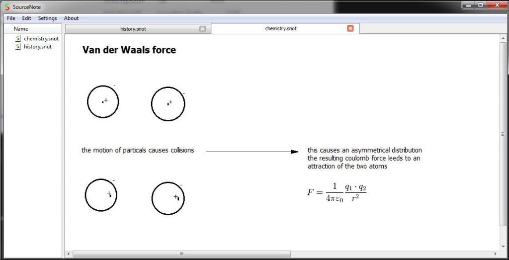 SourceNote je užitečná pomůcka pro rychlou a přehlednou evidenci různých poznámek nebo nápadů. K poznámkám lze navíc připojit jednoduché nákresy, grafické prvky nebo vzorečky. Jednotlivé poznámky se ukládají do samostatných souborů.