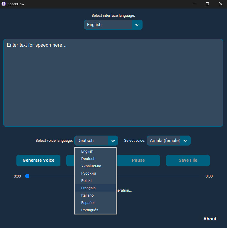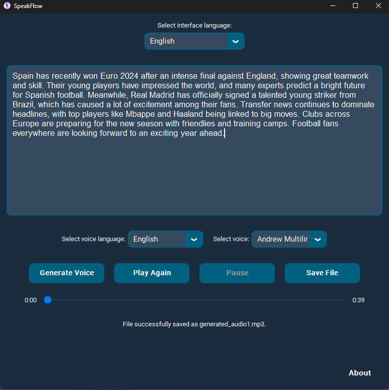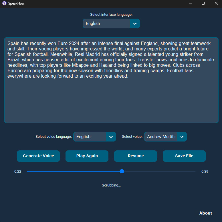 SpeakFlow je nástroj, respektive hlasový asistent sloužící pro převod psaného textu na mluvenou řeč (TTS - Text-to-Speech).