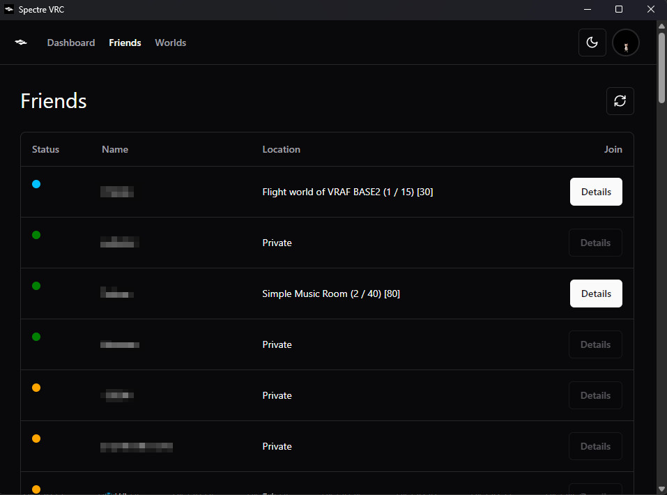 Spectre je aplikace sloužící pro přehlednou správu seznamu přátel v online platformě VRChat a to i bez nutnosti spouštění webového prohlížeče.