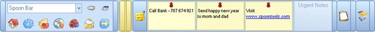 SpoonBar je užitečná nástrojové lišta sloužící pro přehlednou správu důležirých úkolů, poznámek, odkazů apod. přímo na pracovní ploše systému. Samozřejmostí je možnost nastavení připomenutí události. Jednotlivé úkoly a poznámky lez samozřejmě i přehledně třídít.