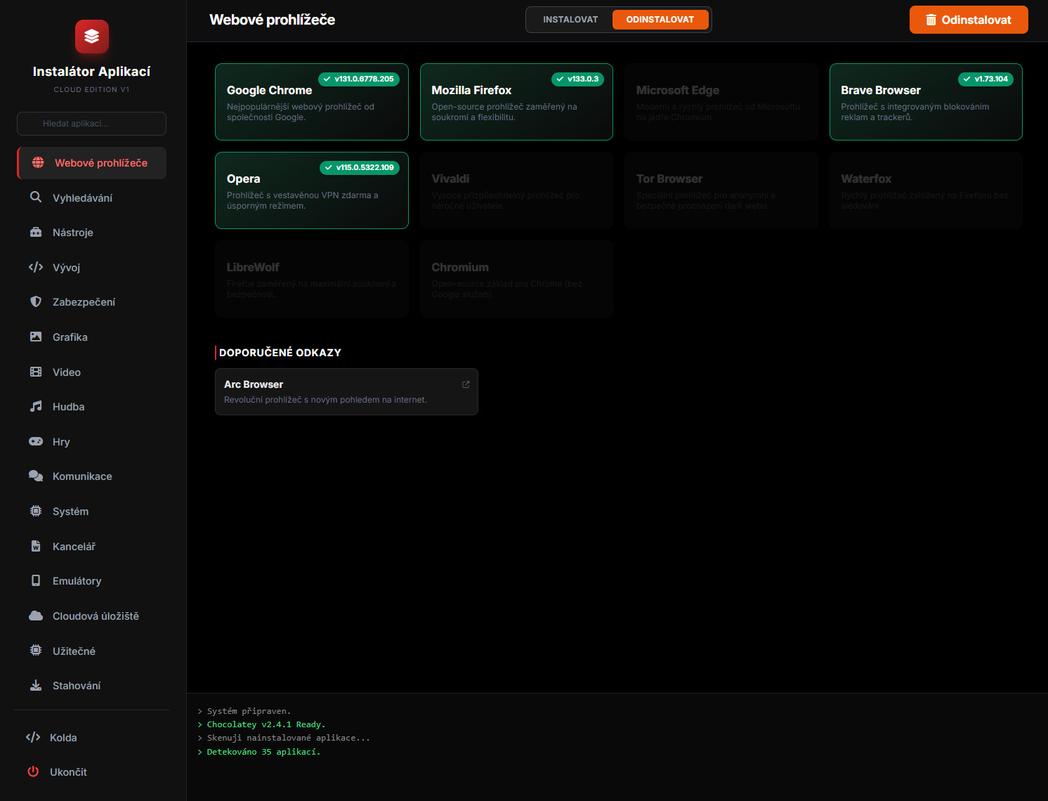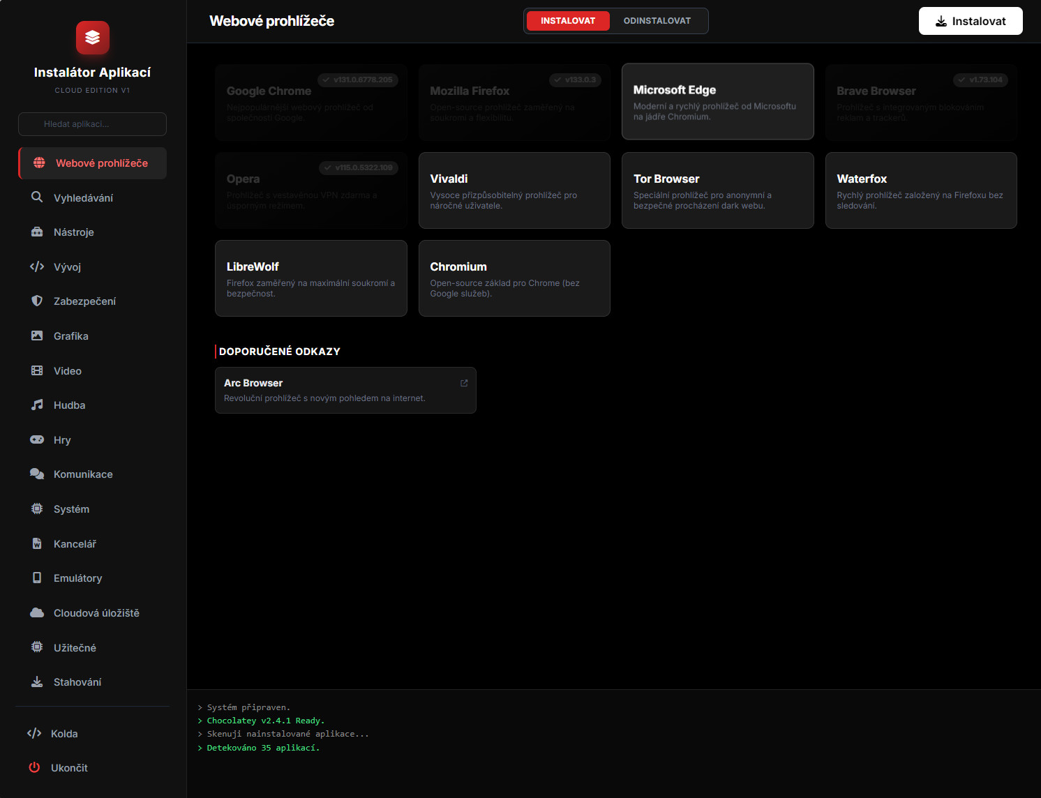 Správce Aplikací je nástroj pro automatizaci instalace softwaru. Program využívá PowerShell a Chocolatey pro hromadné instalování a mazání aplikací.
