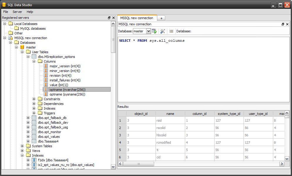 SQL Data Studio je přehledný a kvalitní prohlížeč SQL databází typu: