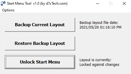 Start Menu Tool je jednoduchá pomůcka, která slouží pro zálohování a případnou obnovu rozložení nabídky Start ve Windows 10. Možná je rovně toto rozložení uzamknout proti případným úpravám. Aplikace pak po spuštění zobrazuje datum vytvoření poslední zálohy nabídky Start.