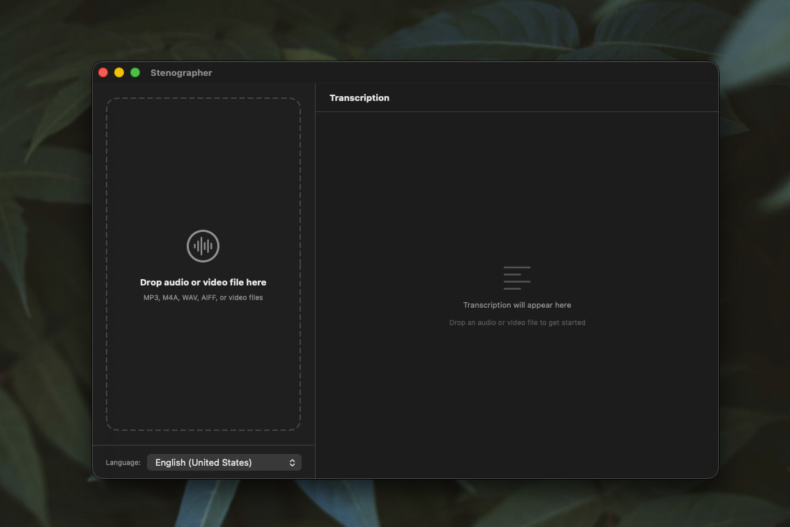 Stenographer for Mac je nástroj určený pro transkripci, respektive přepis textu z audio a video souborů pomocí rozhraní Apple Speech API pro rozpoznávání řeči. Vybraný soubor se pomocí myši snadno přetáhne do levého panelu programu a zvolí se jazyk a přepis textu se pak zobrazuje v pravém panelu. Vytvořený text lze pak snadno zkopírovat do schránky nebo uložit do souboru. Program podporuje všechny nejpoužívanější multimediální formáty (MP3, M4A, WAV,...) a jazykové modely jsou stahovány automaticky dle potřeby.