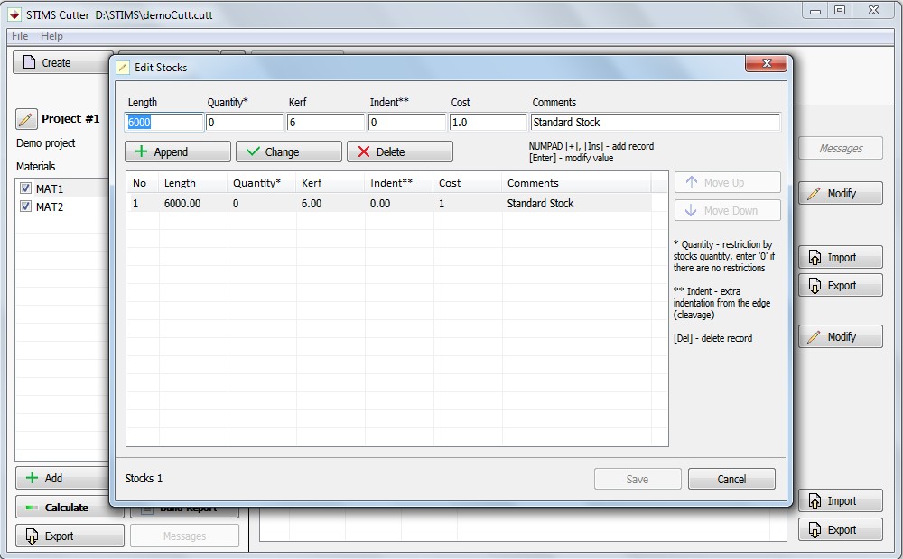 STIMS Cutter je aplikace pro tvorbu a optimalizaci 1D nářezových plánů pro dělení materiálu. Program využívá jedinečný algoritmus k řešení problému "Bin Packing Problem", dokáže minimalizovat odpad a tím i snížit náklady při dělení materiálu.
