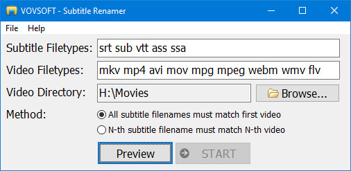 Subtitle Renamer je nenáročný pomocník sloužící pro automatické přejmenování titulků k filmům na základě názvů video souborů. Uživatel pouze vybere složku, kde jsou videa a titulky uloženy, dále určí typy souborů s titulky a video soubory a nakonec zvolí metodu přejmenování.