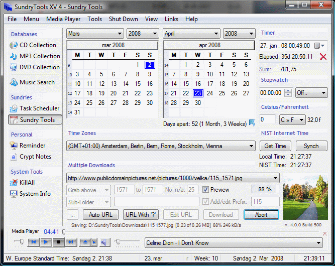 SundryTools XV je nástroj pro správu domácí sbírky CD či DVD nosičů a audio souborů MP3. Samozřejmostí je snadné a rychlé vyhledávání záznamů spolupráce s CDDB databází, offline vyhledávání an CD a DVD a mnoho dalšího.