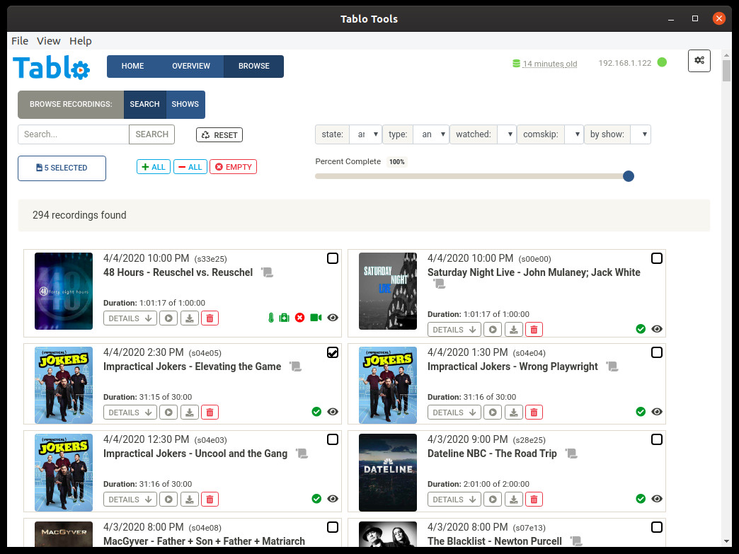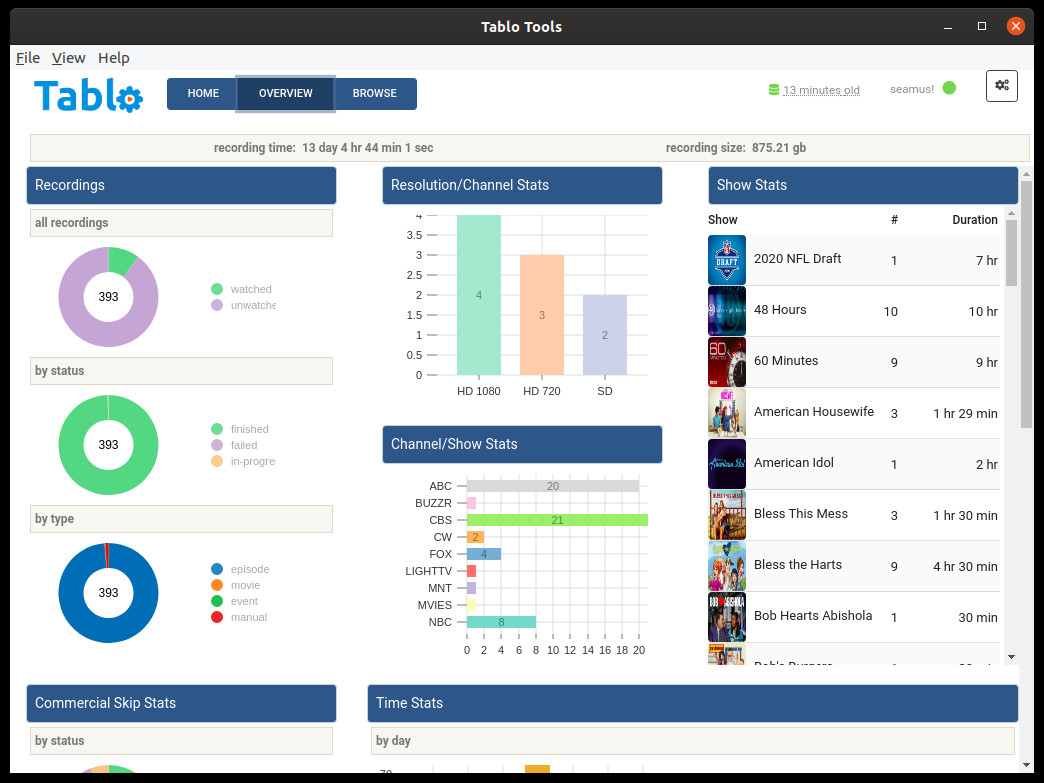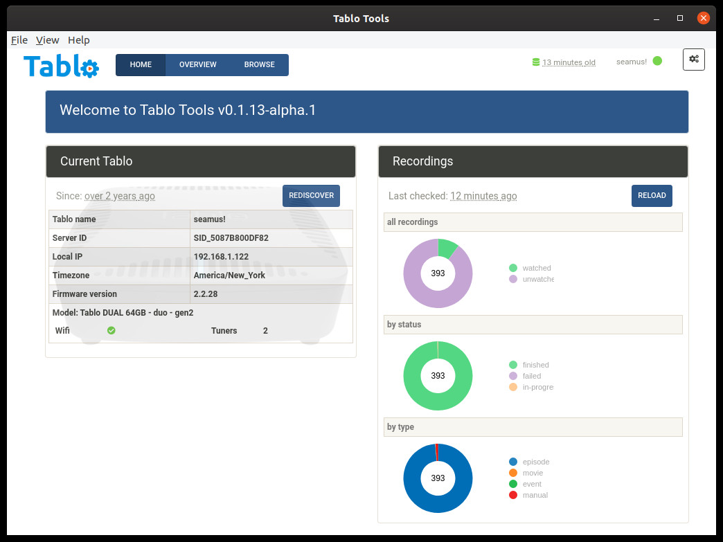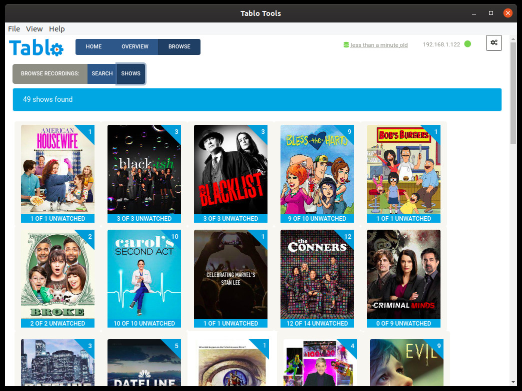 Tablo Tools je aplikace sloužící pro přehlednou správu video nahrávek pořízených pomocí video rekordéru (DVR) Tablo. Program umožňuje například automatickou detekci a načtení všech video záznamů, podporuje hromadný export nebo mazání nahrávek, vyhledávání a filtrování nahrávek, prohlížení grafů a statistik apod.