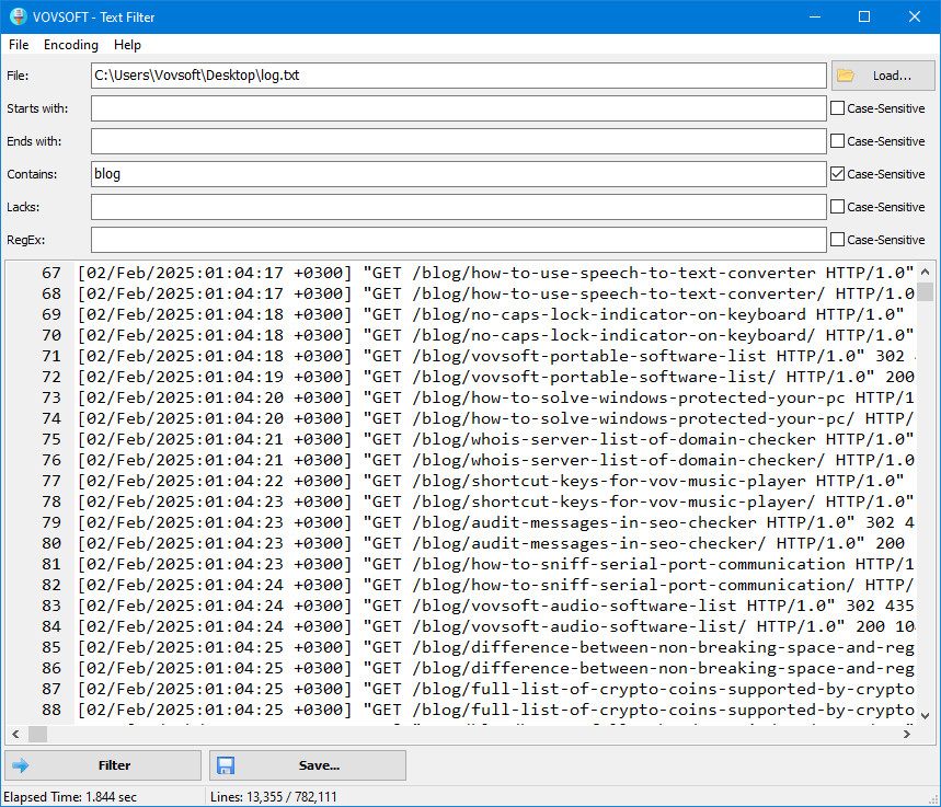 Text Filter je jednoduchá pomůcka sloužící pro filtrování řádků v textových souborech na základě vlastních zadaných podmínek. Program lze využít například při práci s logy, kódovými soubory nebo velkými datovými sadami, kde je potřeba rychle extrahovat specifické řádky.