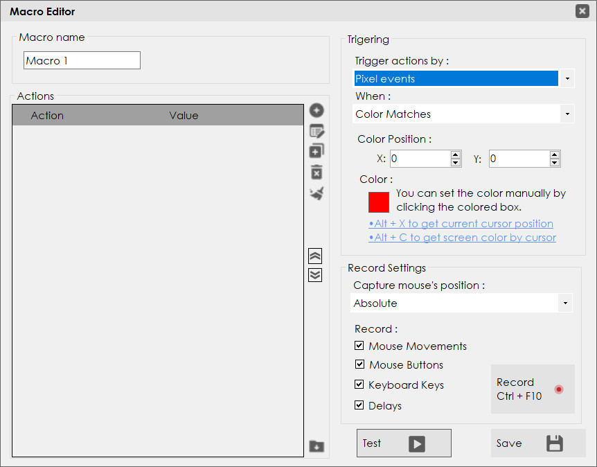 TGM Gaming Macro je nenáročný nástroj sloužící pro nahrávání a tvorbu maker primárně pro hráče počítačových her. Makra lze spouštět pomocí klávesových zkratek nebo je nebo je spustit automaticky na základě změny barvy na obrazovce. Program podporuje ukládání a načítání maker a nevyžaduje instalaci.