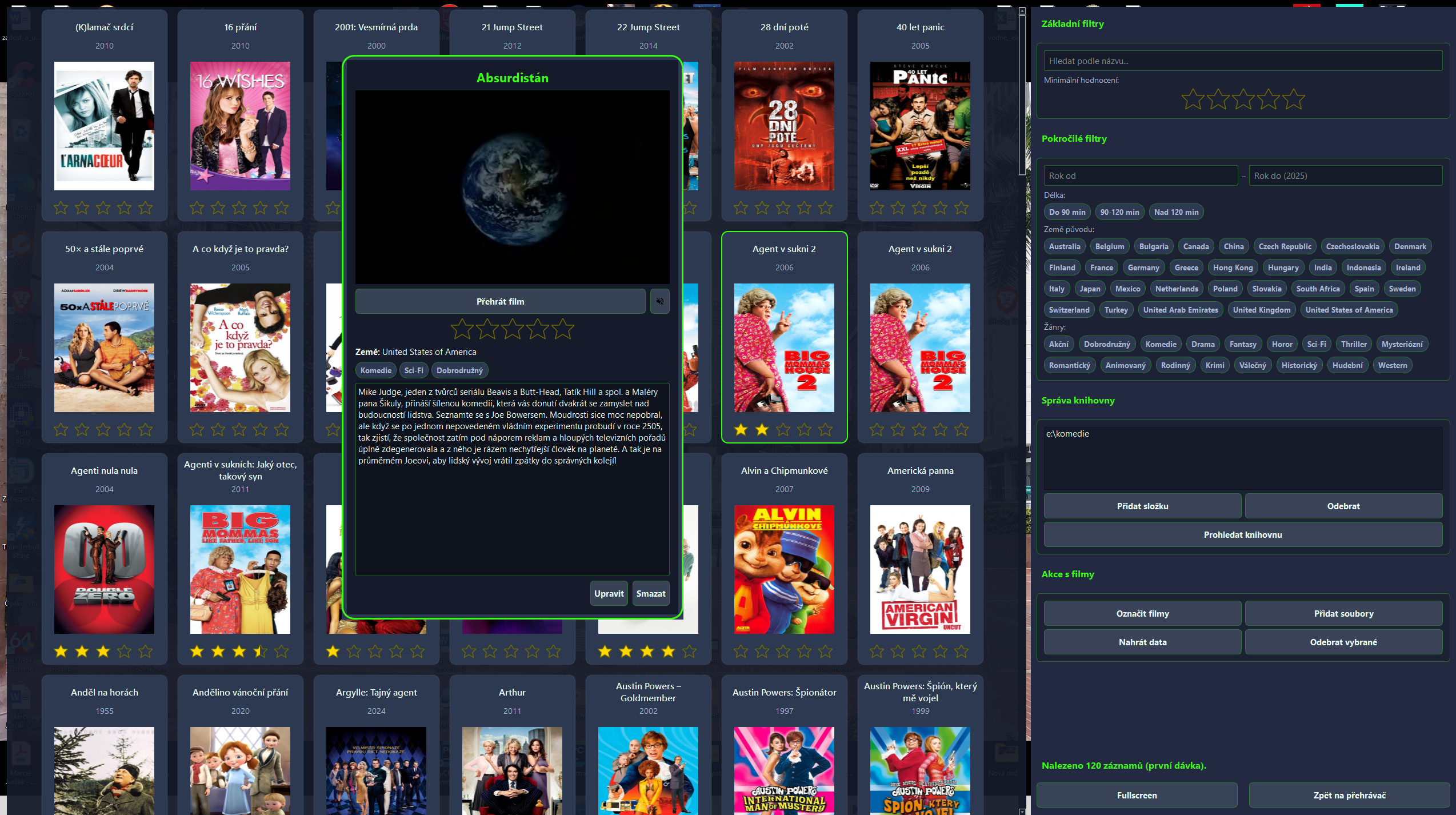 Dejte sbohem chaosu ve složkách! Aplikace automaticky proskenuje vaše filmy a ke každému souboru stáhne detailní informace z internetu. Během chvilky tak budete mít u své sbírky přehledné plakáty, popisy, hodnocení, žánry a další zajímavosti z populární databáze The Movie Database (TMDB). Díky pokročilému filtrování pak snadno najdete přesně ten film, na který máte zrovna náladu.