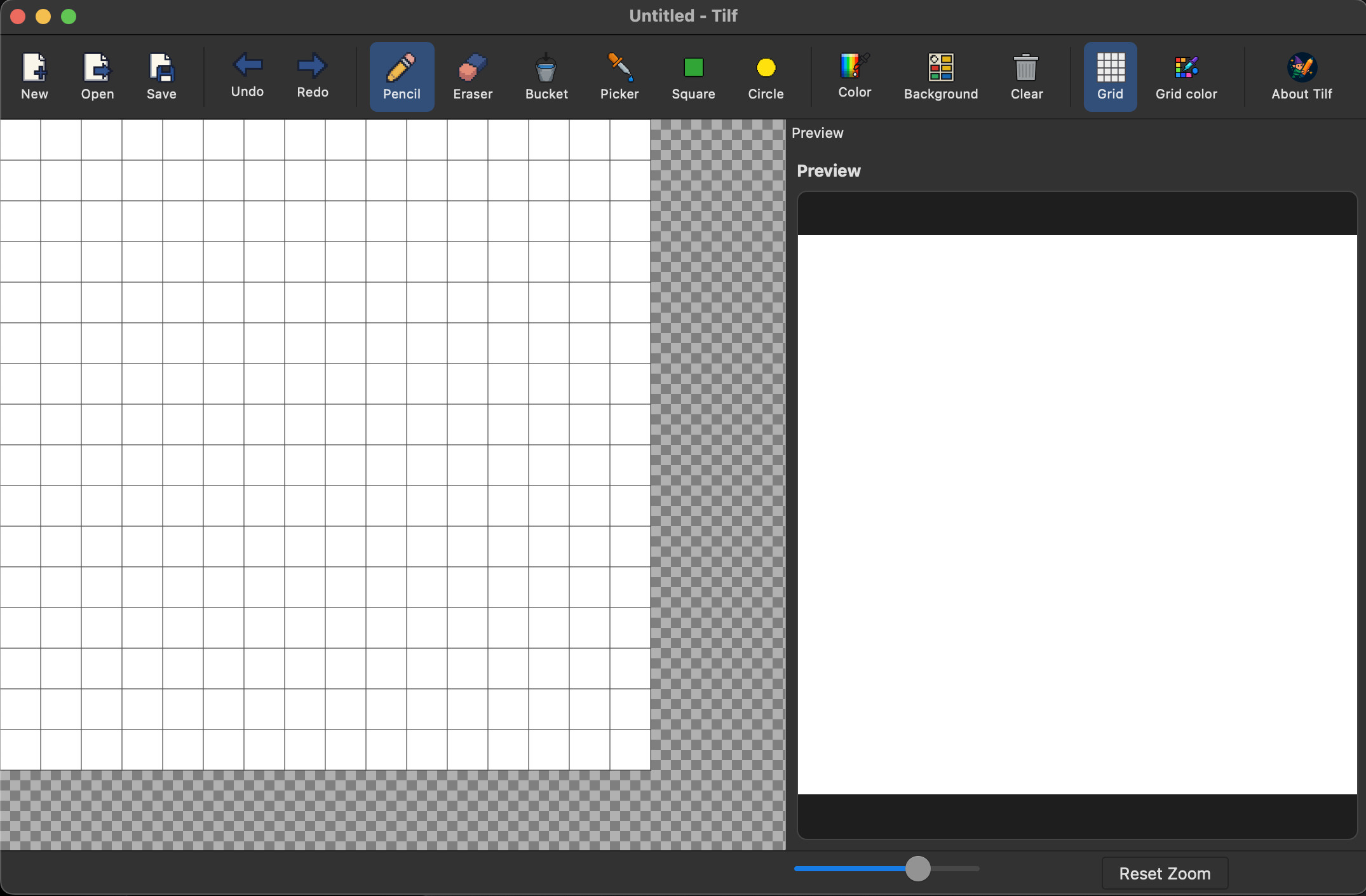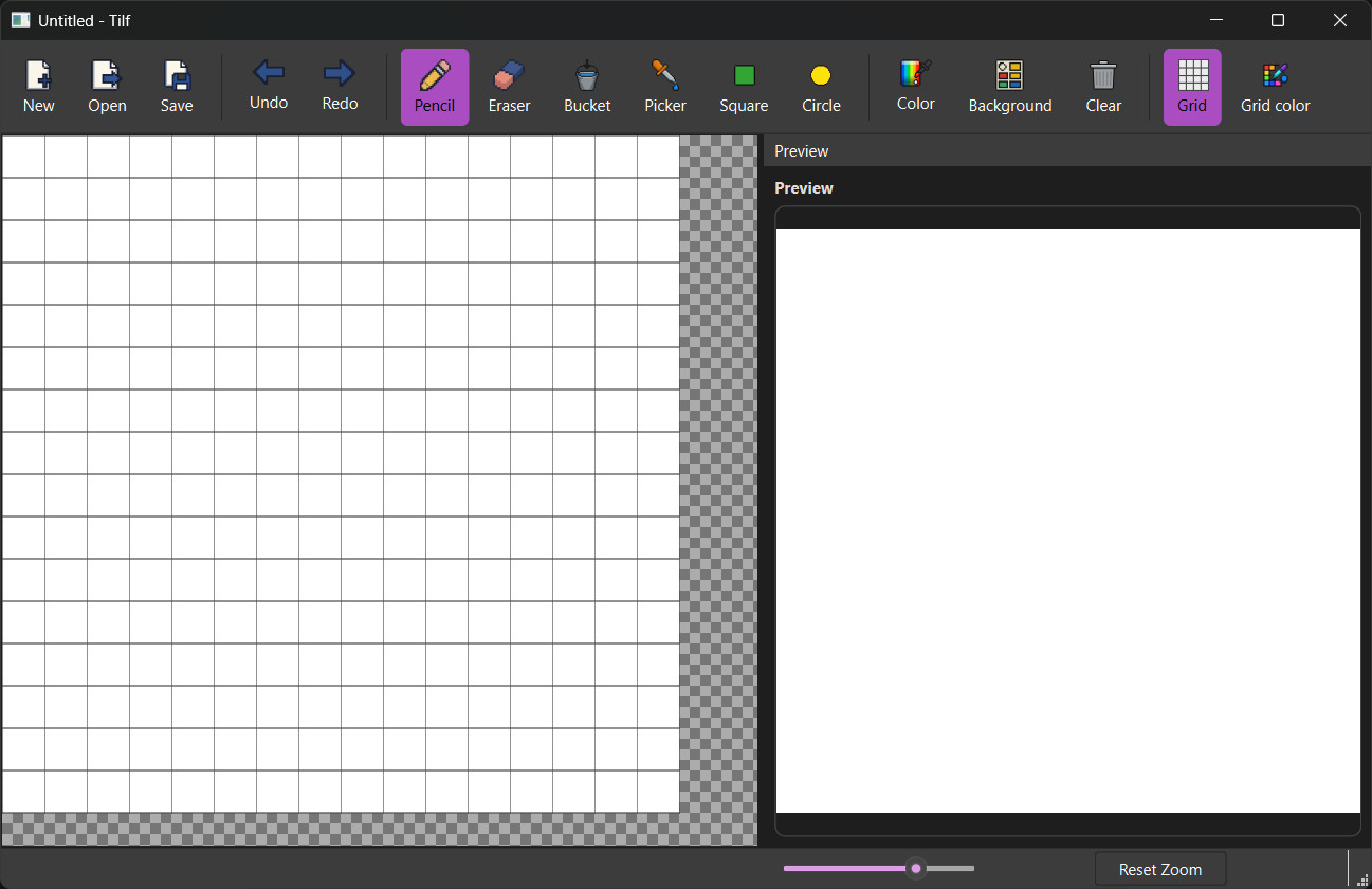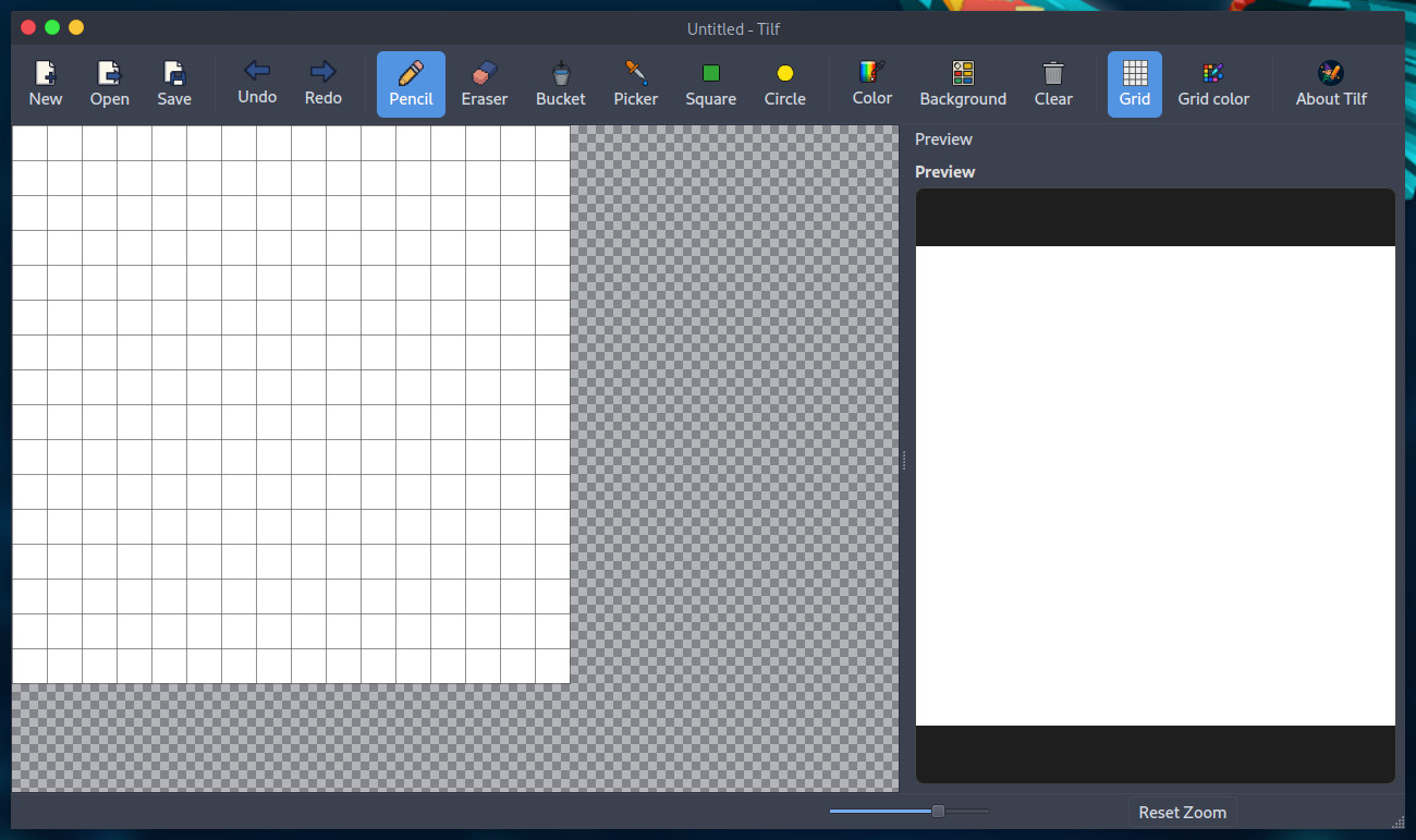 Tilf (Tiny Elf) je jednoduchý, ale výkonný editor pixel art grafiky vytvořený pomocí PySide6. Editor je určen například pro vytváření spriteů, ikon a malých 2D prvků pomocí základních funkcí a nástrojů pro kreslení. Editor dále nabízí živý náhled vytvářeného obrázku, nastavit lze vlastní barvu pozadí i mřížky a možný je také import i export souborů typu PNG, JPEG a BMP.