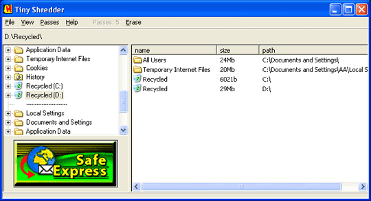 Tiny Shredder je jednoduchá pomůcka pro dokonalé a nevratné smazání obsahu vybraných složek. Program také umožňuje vysypat koš, vymazat dočasné a cookies soubory internetových prohlížečů i jejich historii. Tiny Shredder se nemusí instalovat.