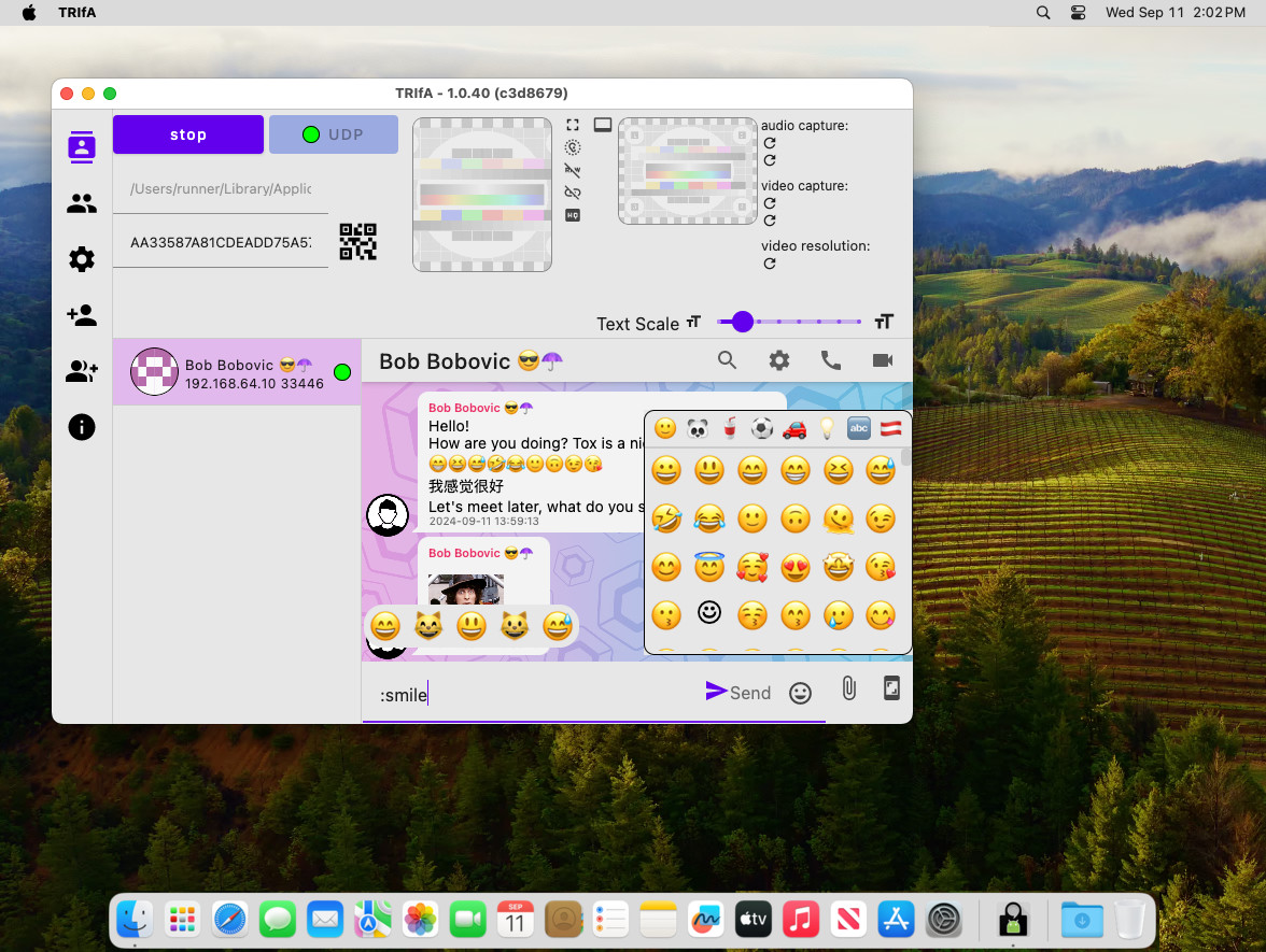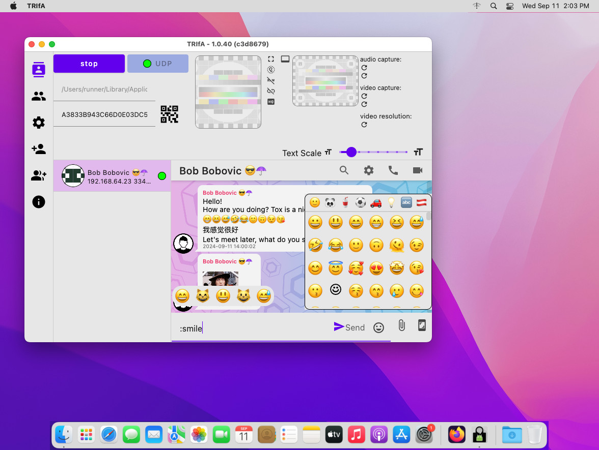 TRIfA Material je komunikační respektive chatovací klient využívající šifrovaný peer-to-peer protokol Tor Proxy (Tox), čímž lze skrýt skutečnou IP adresu počítače. Nechybí možnost skupinové komunikace a odesílání / příjem souborů. Samozřejmostí jsou také notifikace, sdílení obrazovky, audio/video hovory, potlačení šumu v audio hovorech nebo podpora emotikon.
