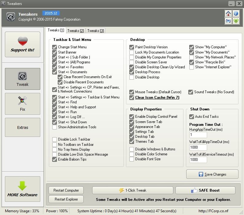 Tweakers je užitečná pomůcka určená pro zvýšení výkonu operačního systému a počítače pomocí vyhledání a opravy různých chyb. Uživatel má také k dispozici přístup k velkému množství různých detailních nebo skrytých systémových nastavení. Program se nemusí instalovat.