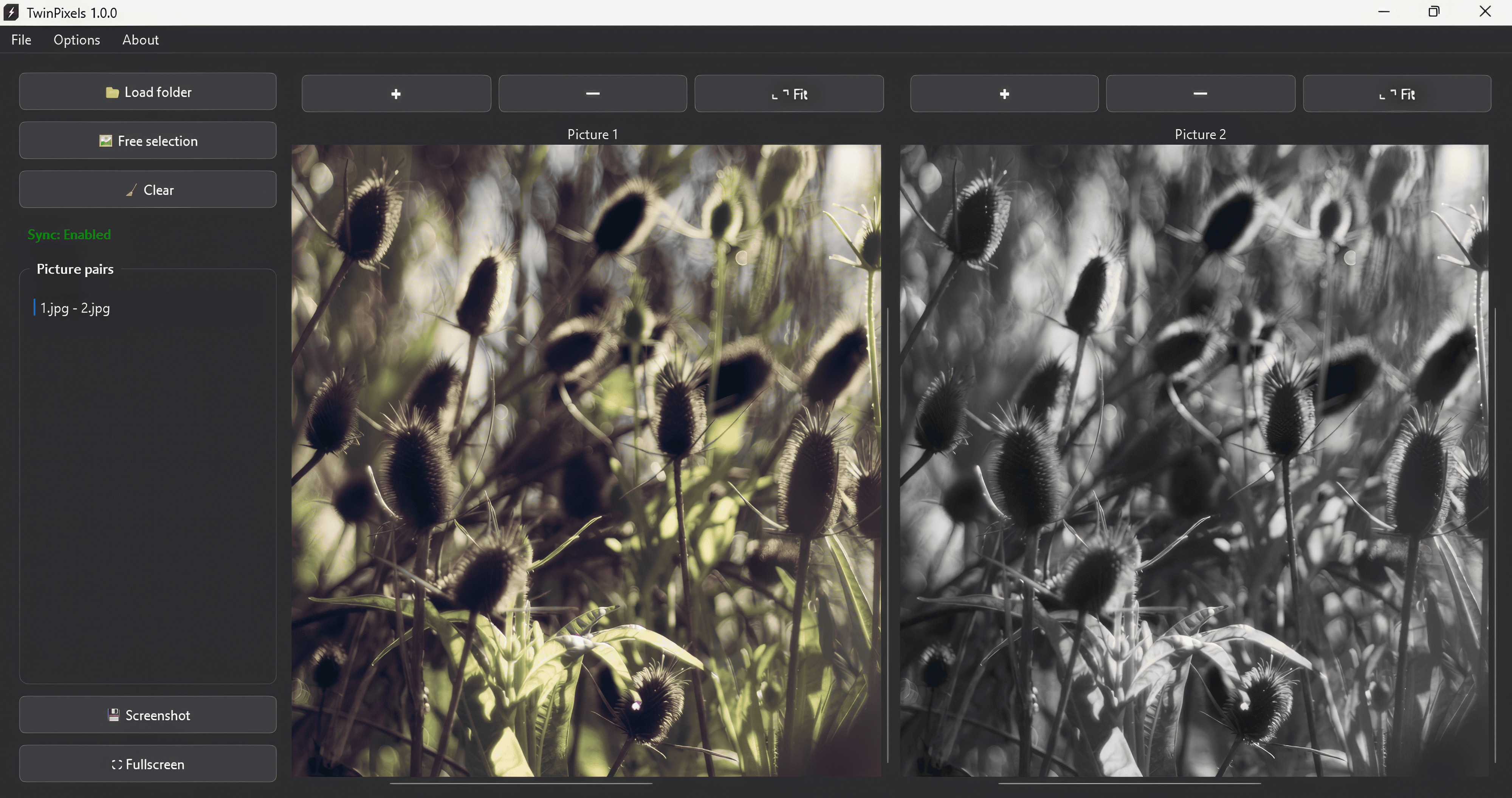 TwinPixels je užitečný pomocní sloužící pro prohlížení a přehledné porovnávání dvou obrázků či fotografií umístěných vedle sebe. Program dokáže načíst dvojici snímků z celých složek nebo je ručně párovat. Nástroj umožňuje velmi plynulé přiblížení i posun snímků a automatickou synchronizaci pohybu při shodných rozměrech obrázků, proto je také vhodný pro jejich vizuální analýzu.