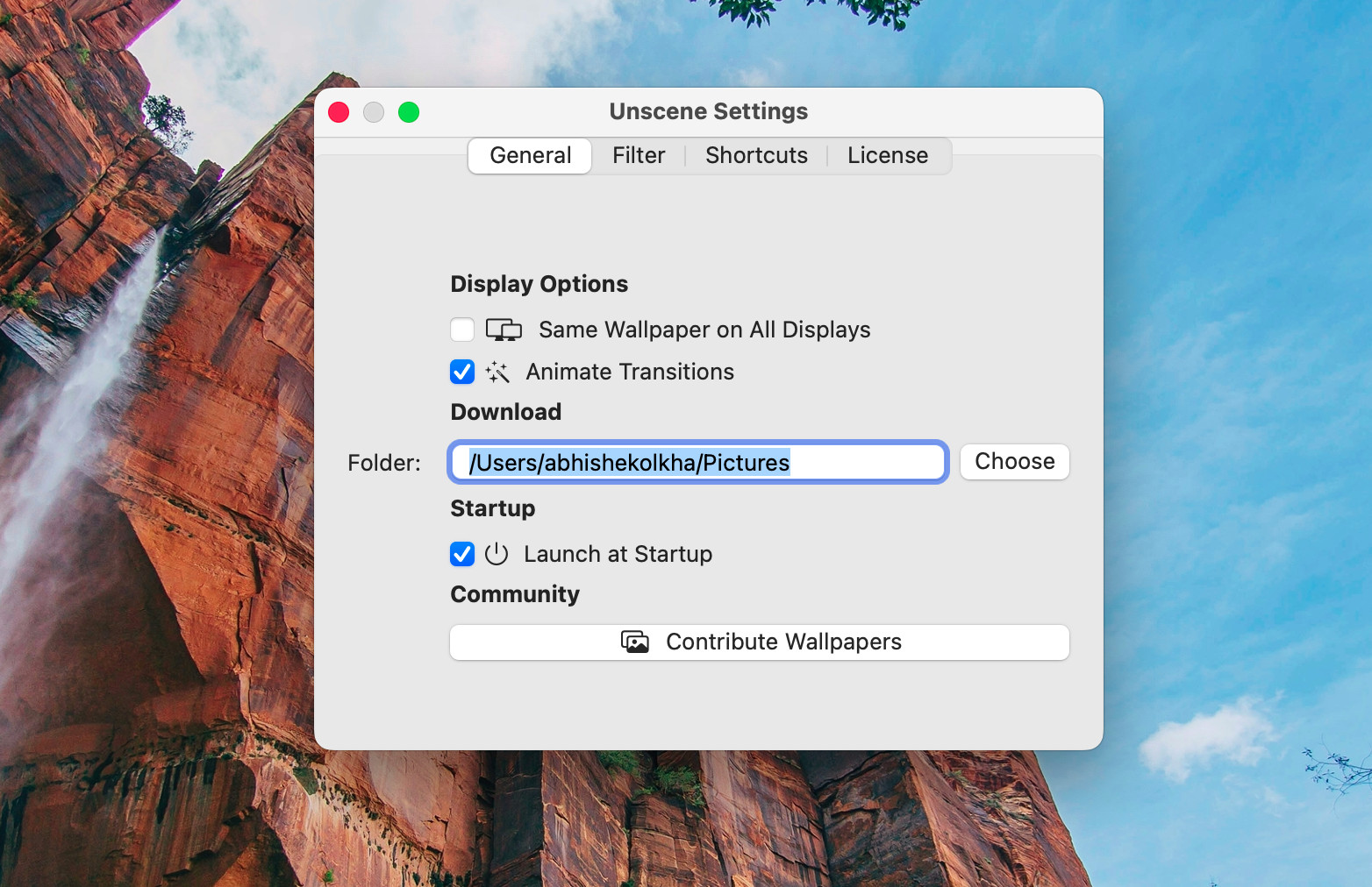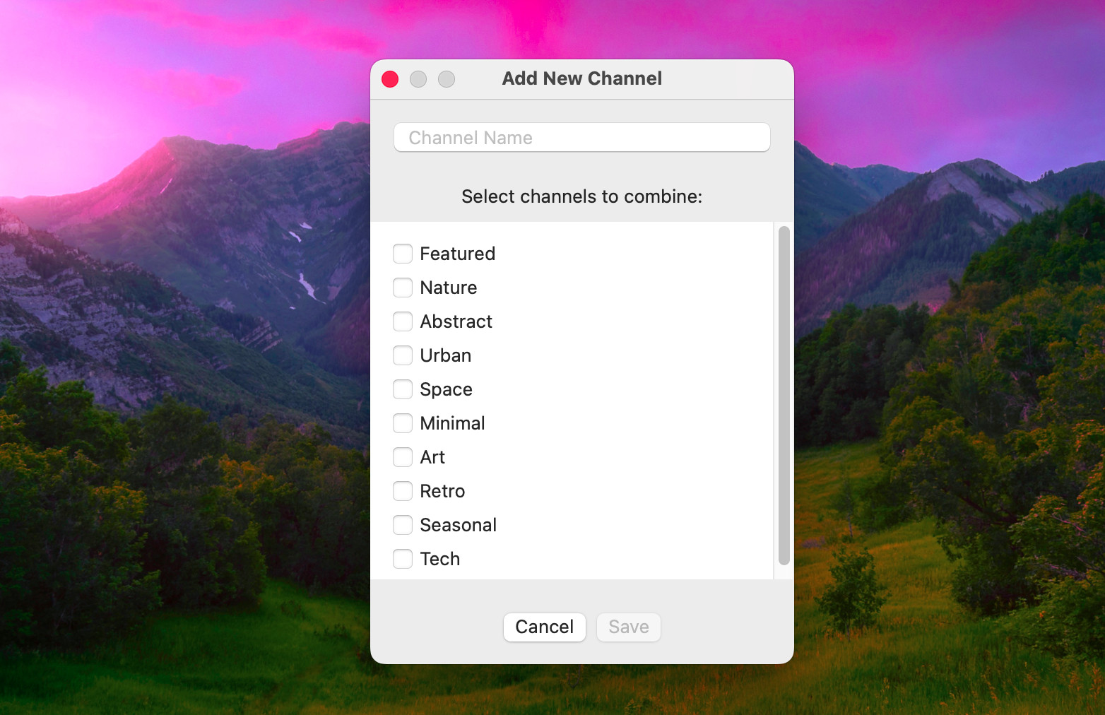 Unscene for Mac je nástroj umožňující provádět automatickou změnu tapet na pozadí pracovní plochy v počítačích s macOS. Změna tapet je prováděna na základě předem vybraných kategorií, respektive kanálů. Tapety jsou pak měněny v předem nastavených časových intervalech (30 minut až týden). Tapety lze pak čerpat ze serverů Nature, Abstract, Urban, Space a dalších. Uživatel si také může vytvořit vlastní kanály (zdroje) z existujících tematických kanálů.