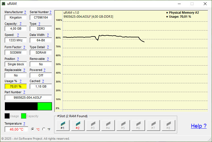 Sledování je prováděno v reálném čase a k dispozic jsou i detailní informace o RAM jako například výrobce, kapacita, rychlost, typ paměti a další. Nechybí ani údaje o aktuální teplotě.