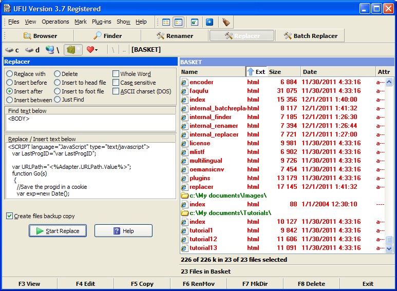 Useful File Utilities (UFU) je rychlý a přehledný správce souborový, který je určený pro běžnou práci se soubory a také pro práci s velkým množstvím složek a souborů. Součástí programu jsou také pokročilé nástroje pro vyhledávání souborů a také pro jejich prohledávání a nahrazení zvoleného testu v souborech. Další externí nástroje lze stáhnout ve formě plug-inů na webových stránkách programu.
