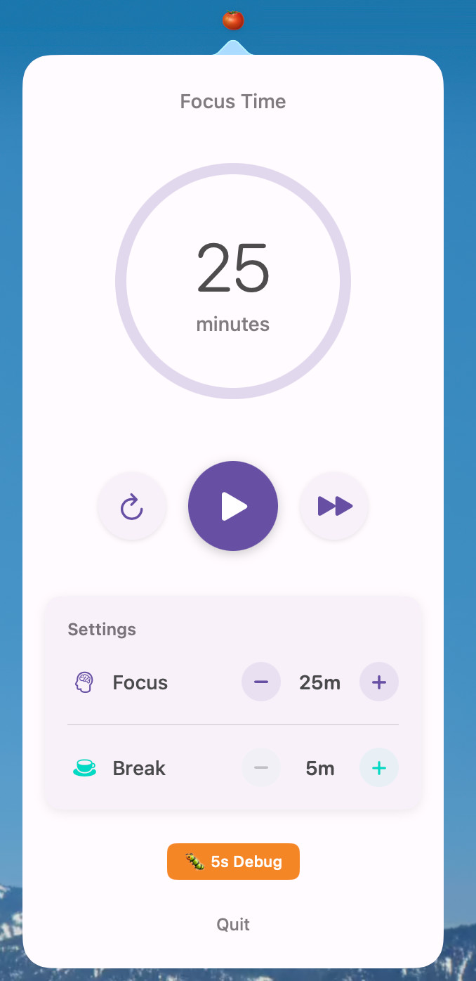 VCPomodoro for Mac je nenáročný a přehledný Pomodoro časovač, který je spuštěn v oblasti menu bar v macOS. Ve výchozím nastavení je vyhrazený čas na práci 25 minut a na odpočinek 5 minut. Tyto časové intervaly lze samozřejmě upravit. Podporováno je ovládání pomocí klávesových zkratek.